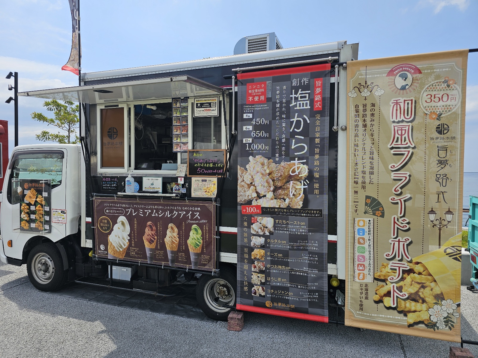 旨夢路本舗は、創作塩からあげと和風フライドポテトを軸としたキッチンカーです。