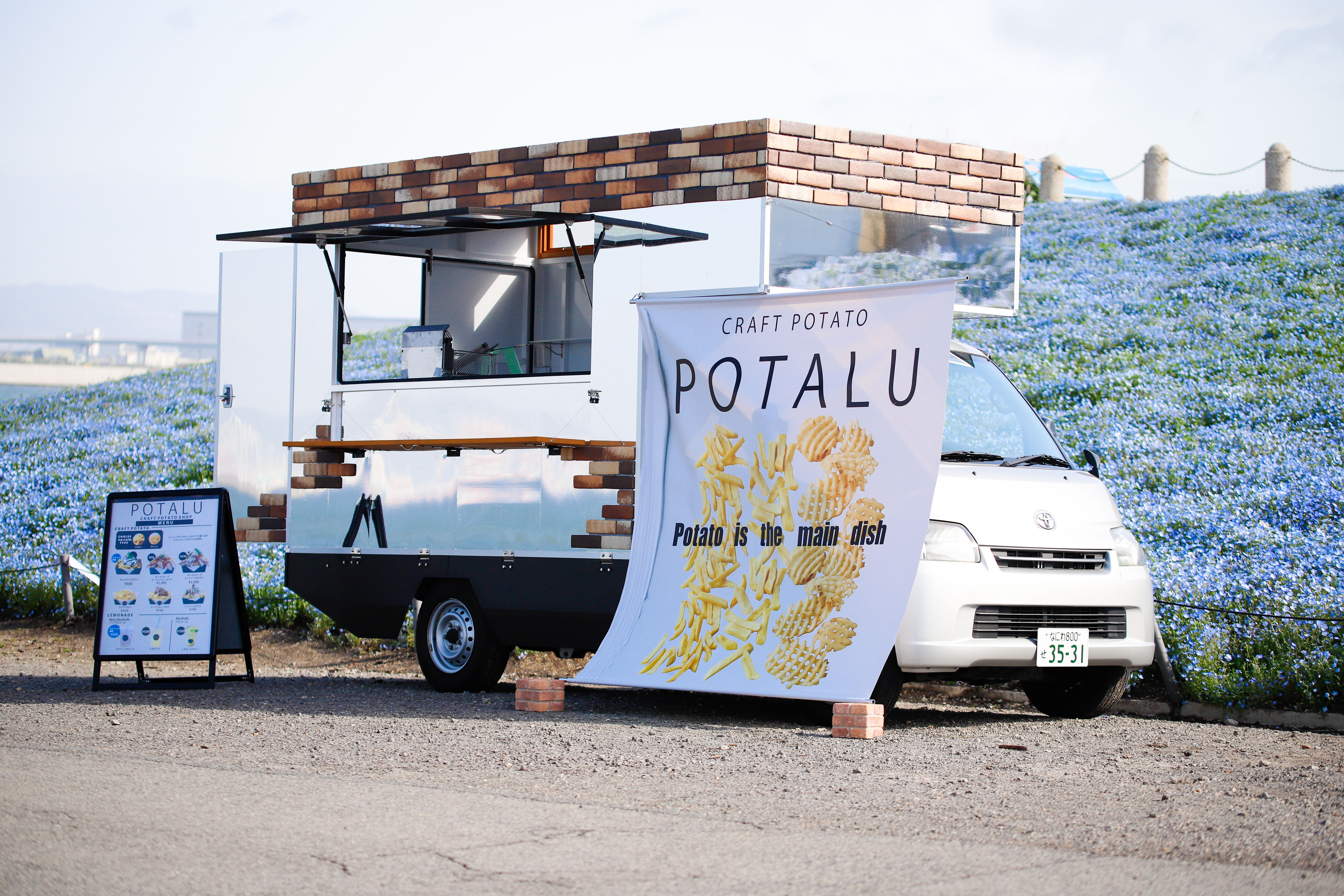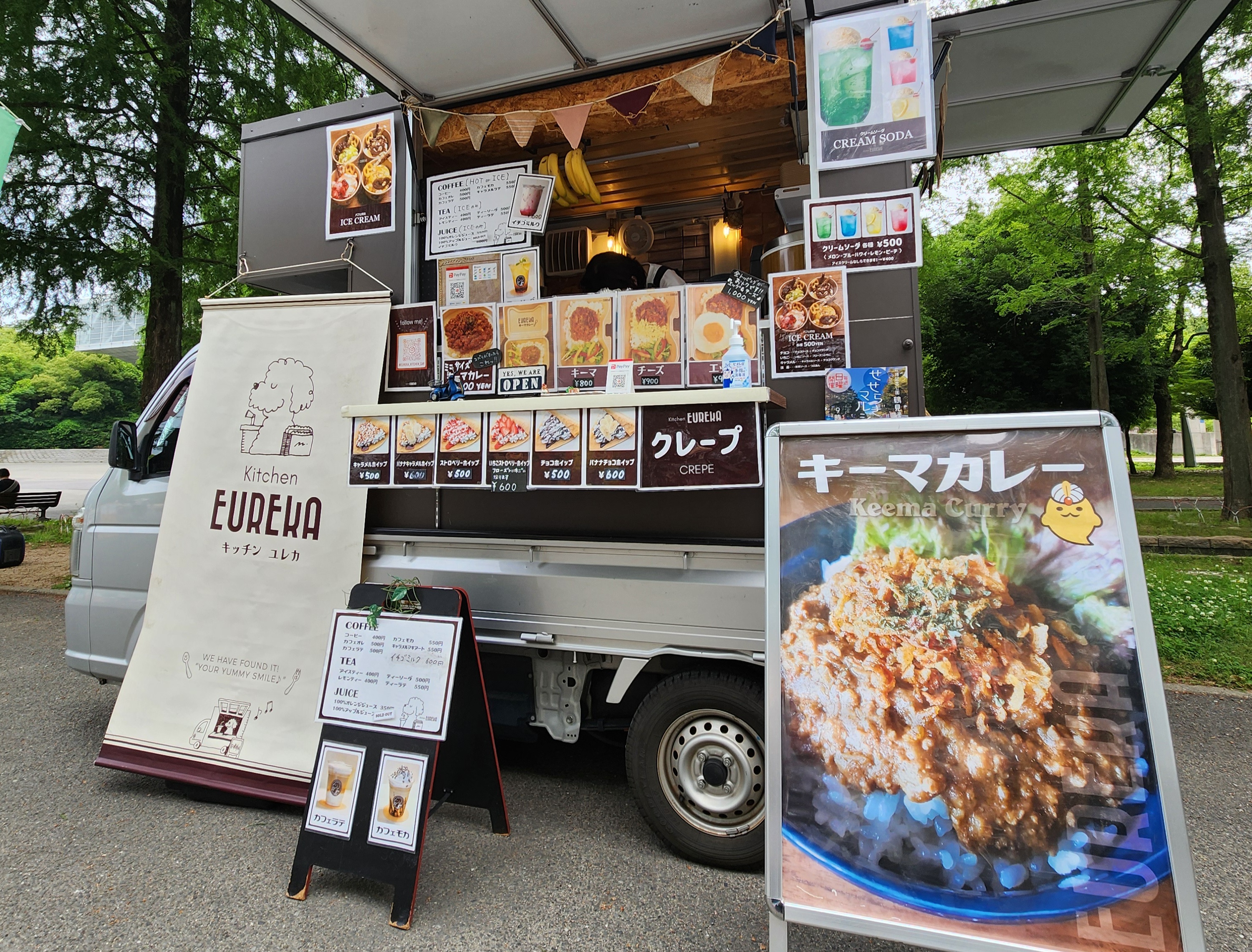 周囲の景色や会場の雰囲気を壊すことなく自然に溶け込み、「出会えたら嬉しくなる」存在感のあるキッチンカーです。