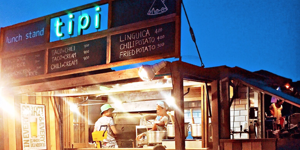 lunch stand tipiは、移動販売車でありながら、まるで常設店舗のような完成度の高い外観が特徴。