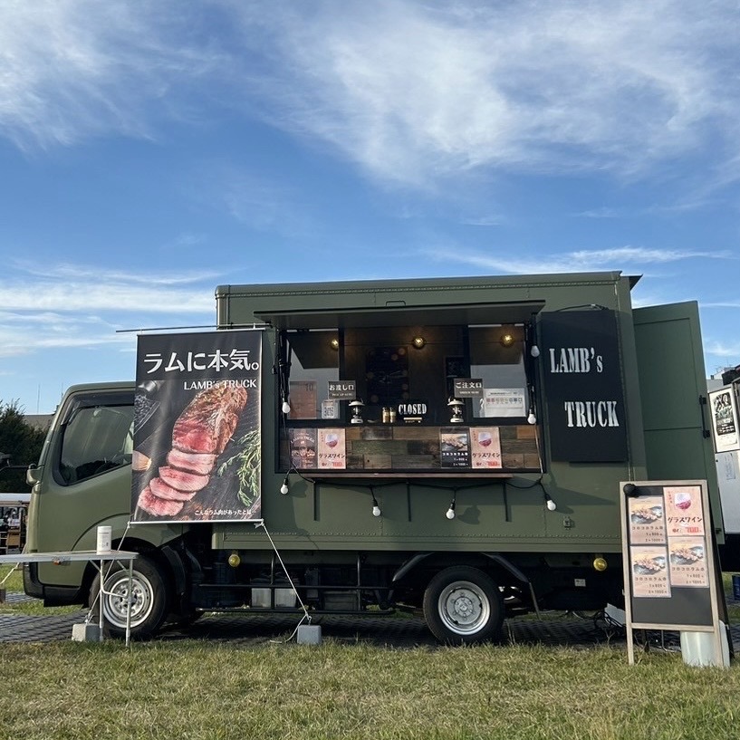 LAMB's TRUCKは、ラムステーキ弁当、ラムステーキ串、フライドチキンなど、肉料理を中心に提供するキッチンカーです。