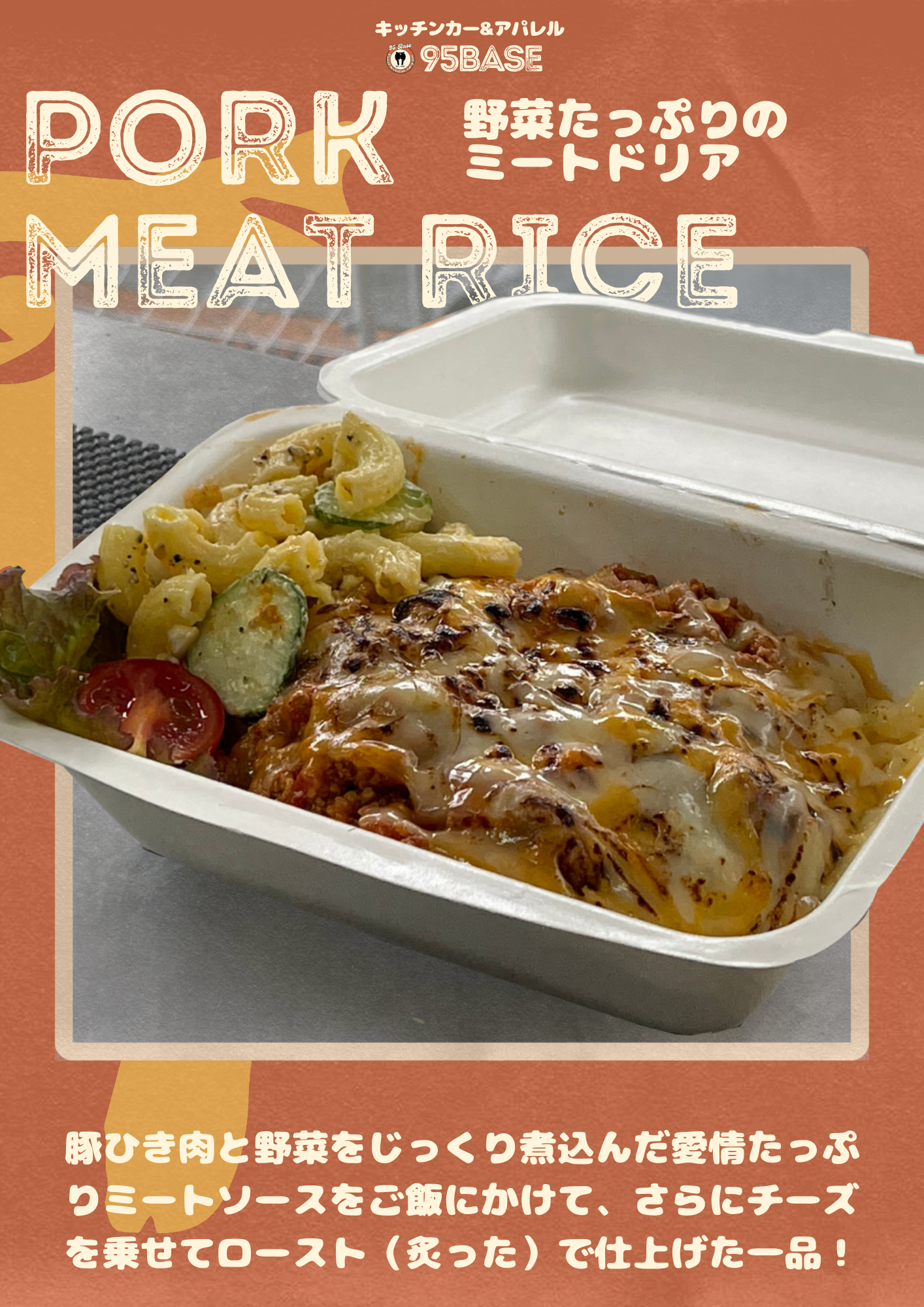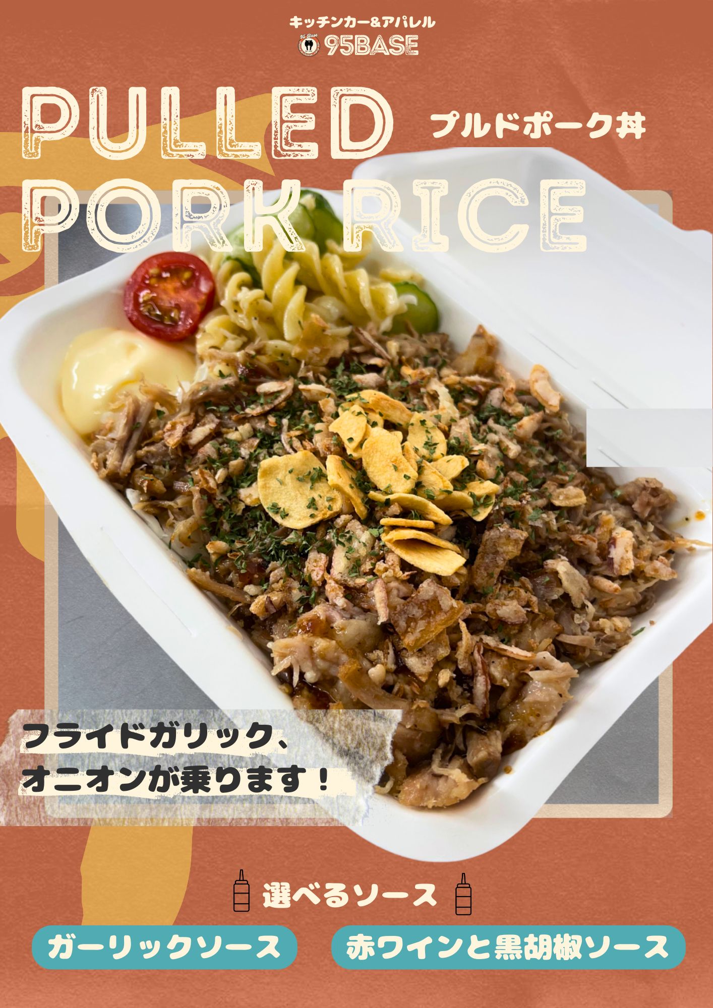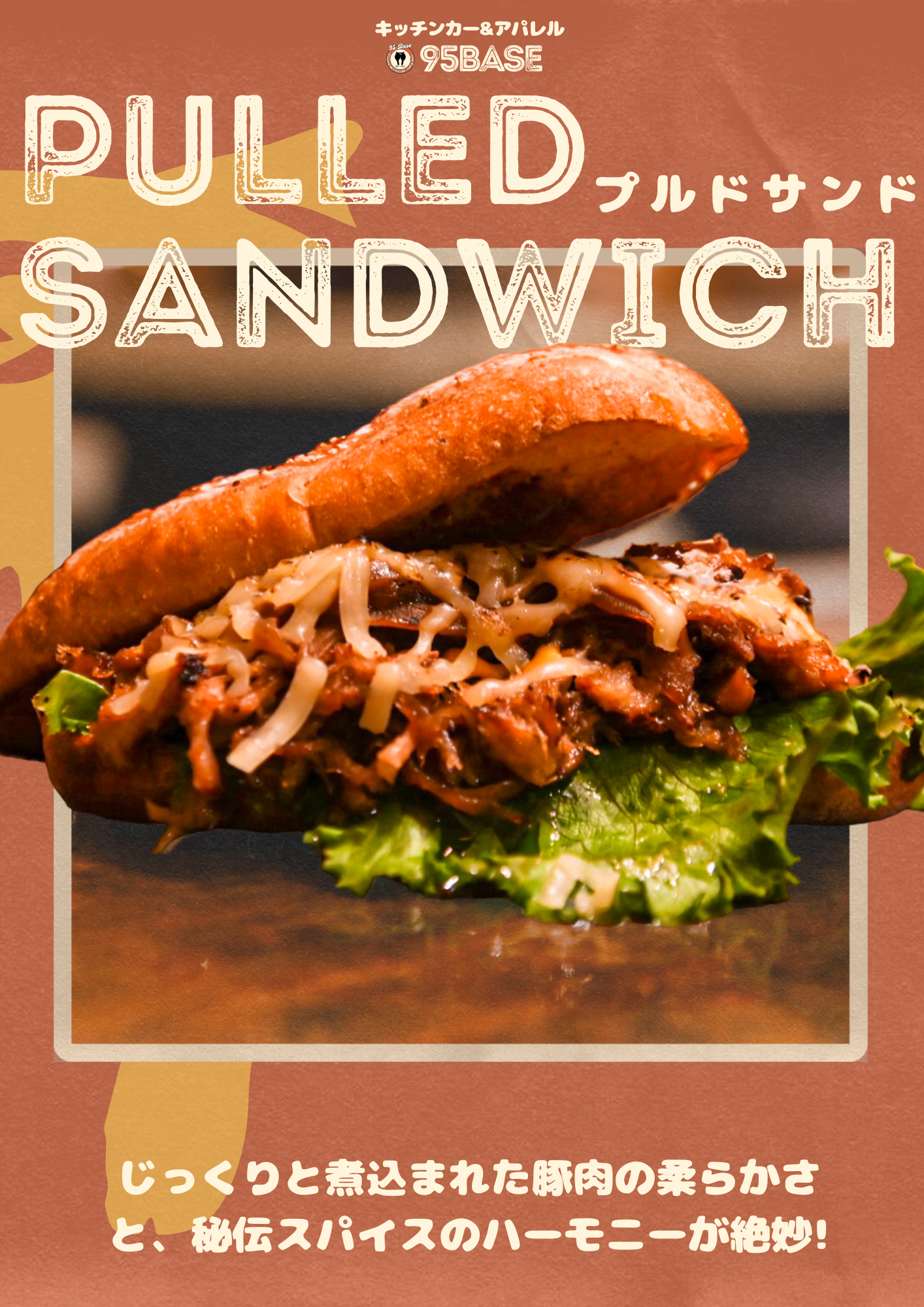 95BASEでは、アメリカ料理のプルドポークがメイン料理となっています!