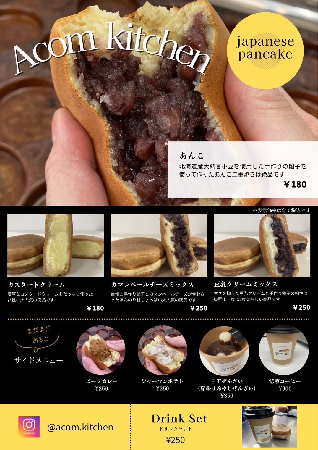 ACOM kitchenでは、手作りと素材の味を大切にする事をモットーに一つずつ愛情込めて販売しています。皆様に喜んで頂けるように日々頑張っています!