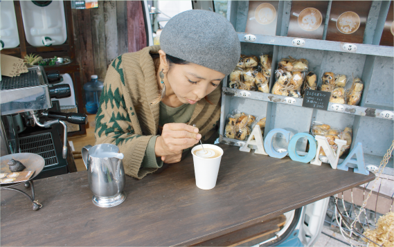 acona coffeeでは、お客様の目の前で、ライブでラテアートを描いてくれます!「acona coffeeオリジナルの絵柄はもちろん、似顔絵や、お手持ちのお写真でも、お客様のリクエストをお聞きしながら、お描きします♪」どんなご要望にも対応してラテアートできるのが、acona coffeeの凄いところ!イベントでは行列必至ですが並ぶ価値のある一杯を淹れてくれます♪