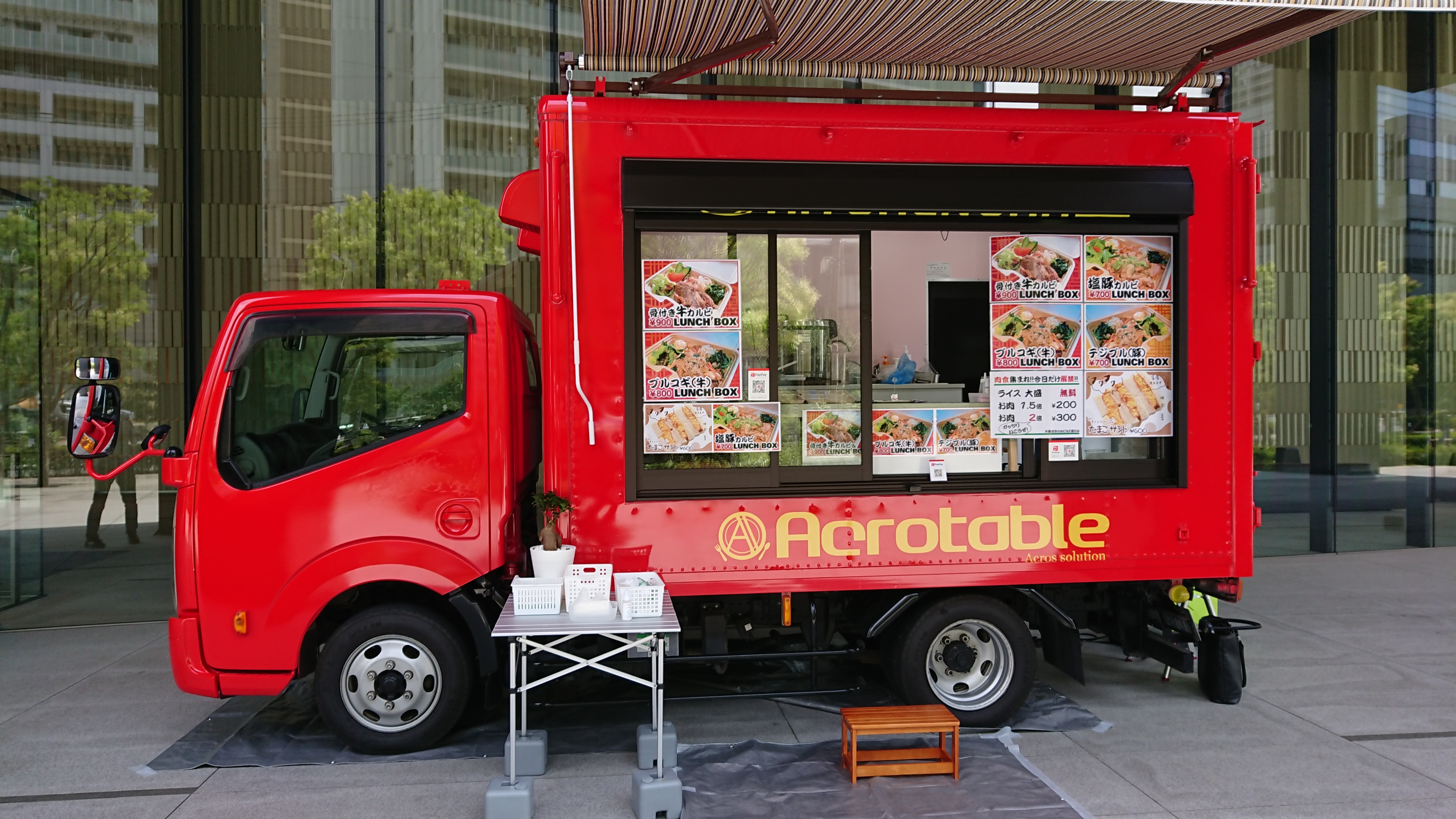 アクロテーブルキッチンカー「ガジュマル」は赤を基調としたちょっと派手なペインティングですが、イベントとで華やかさがいかされると思います。