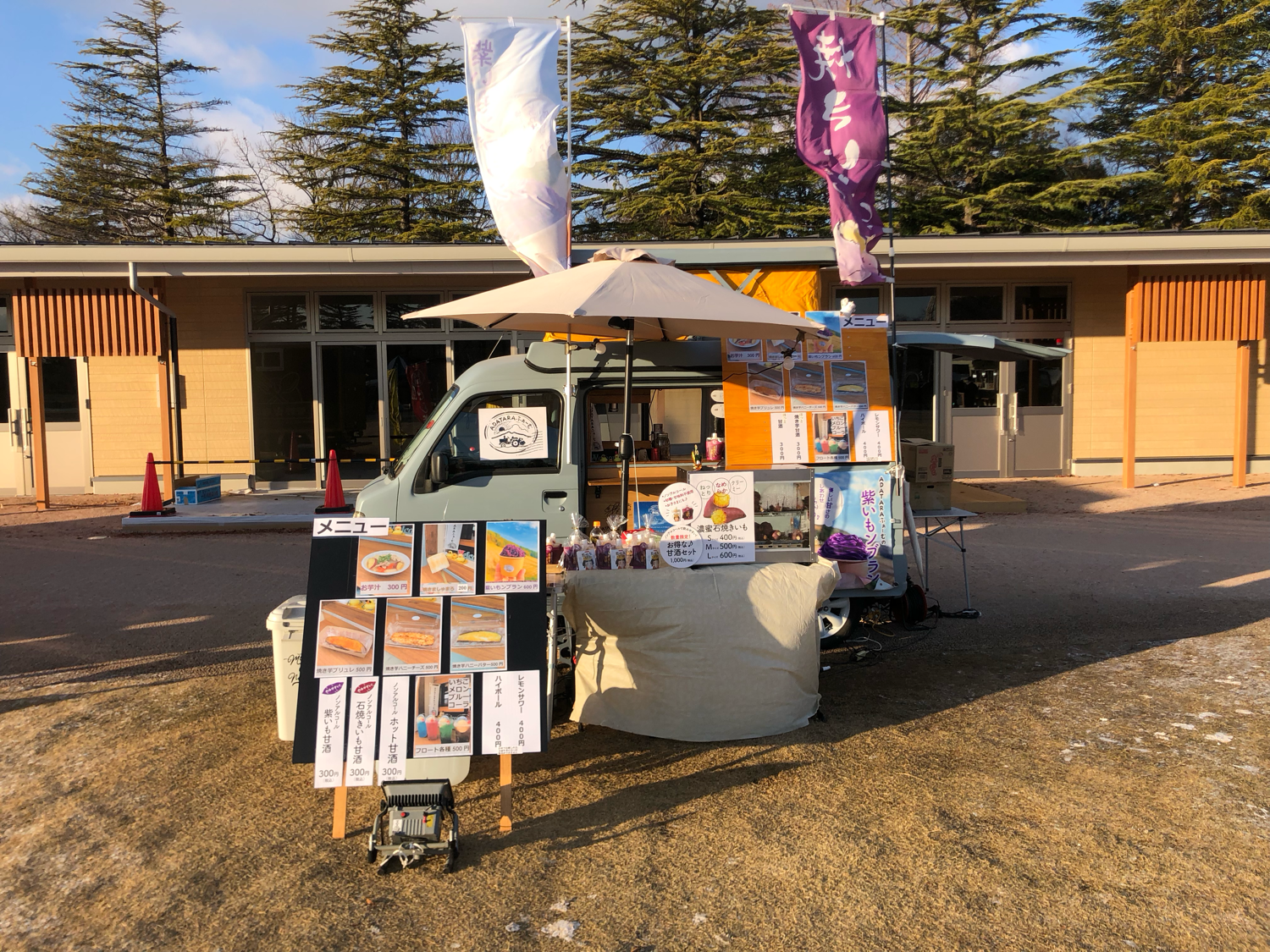 モンブラン、焼き芋トッピング、石焼き芋、ジェラート、甘酒、ドリンク