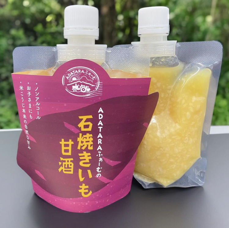 大人気の焼き芋甘酒です。自家栽培のサツマイモ(紅はるか)とお米(コシヒカリ)を使用して作った甘酒です。キッチンカーでは冬季にホット甘酒にてご提供しております。