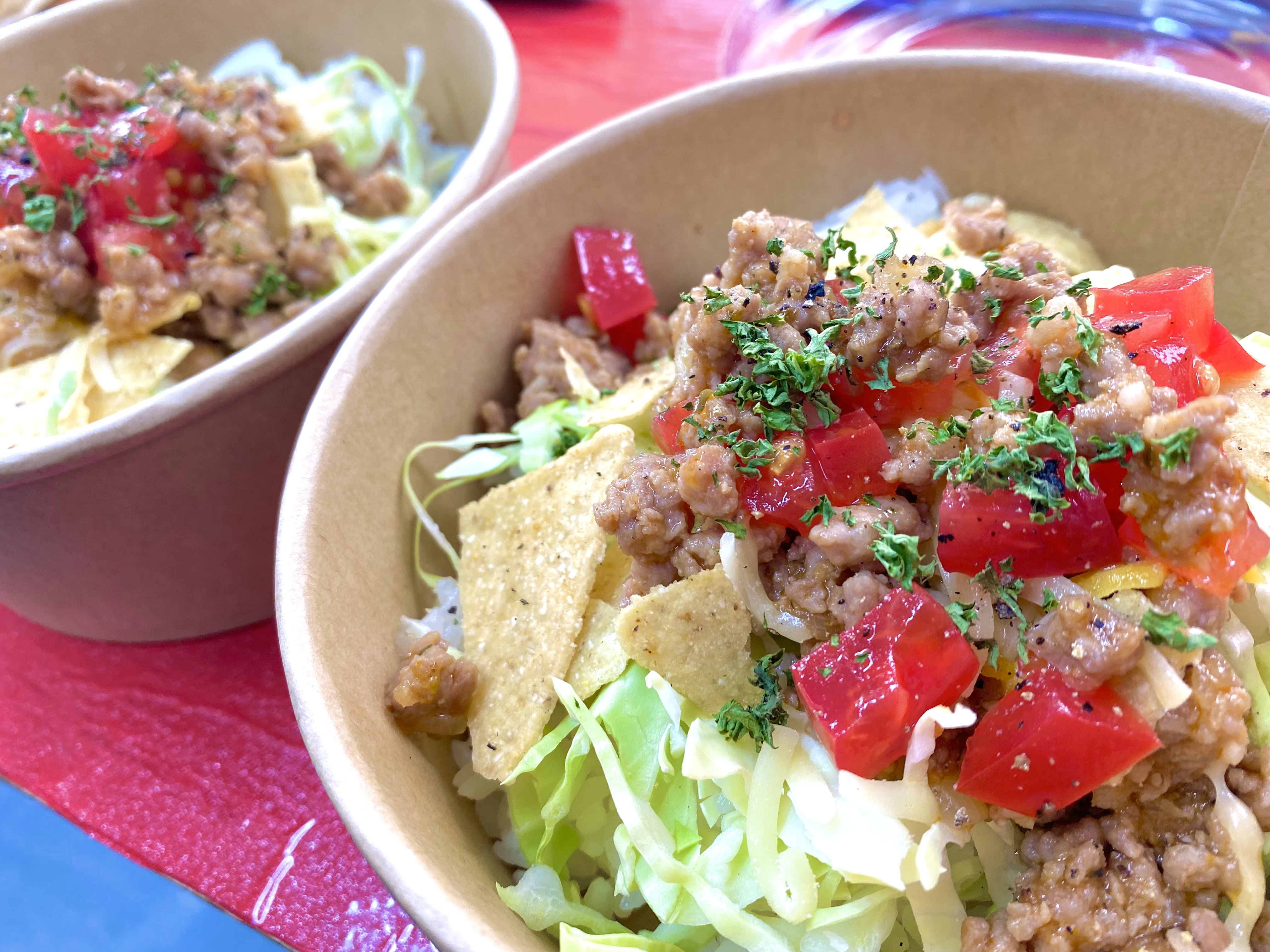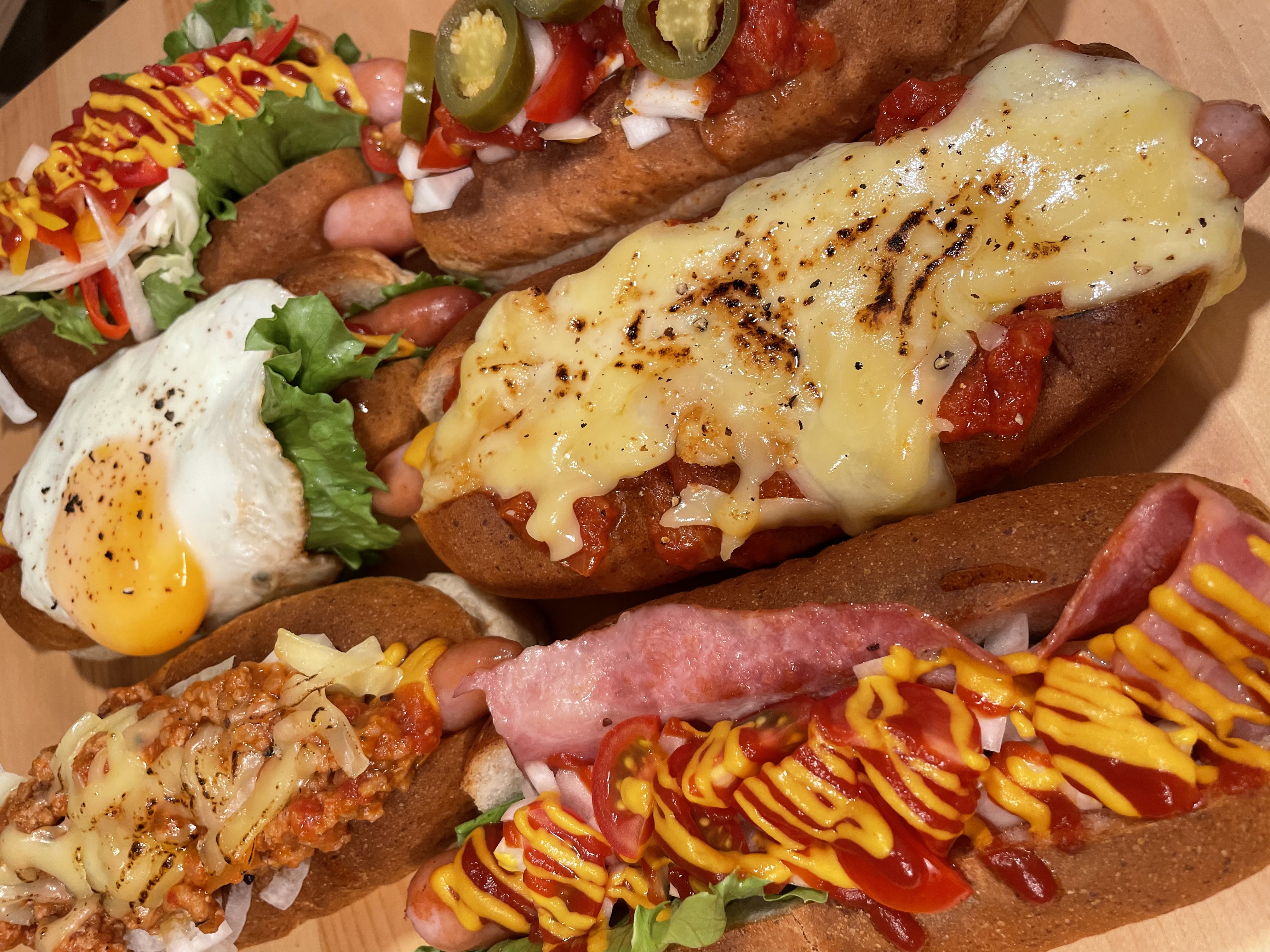 ホットドッグ、ハンバーガー、タコライス、レモネード