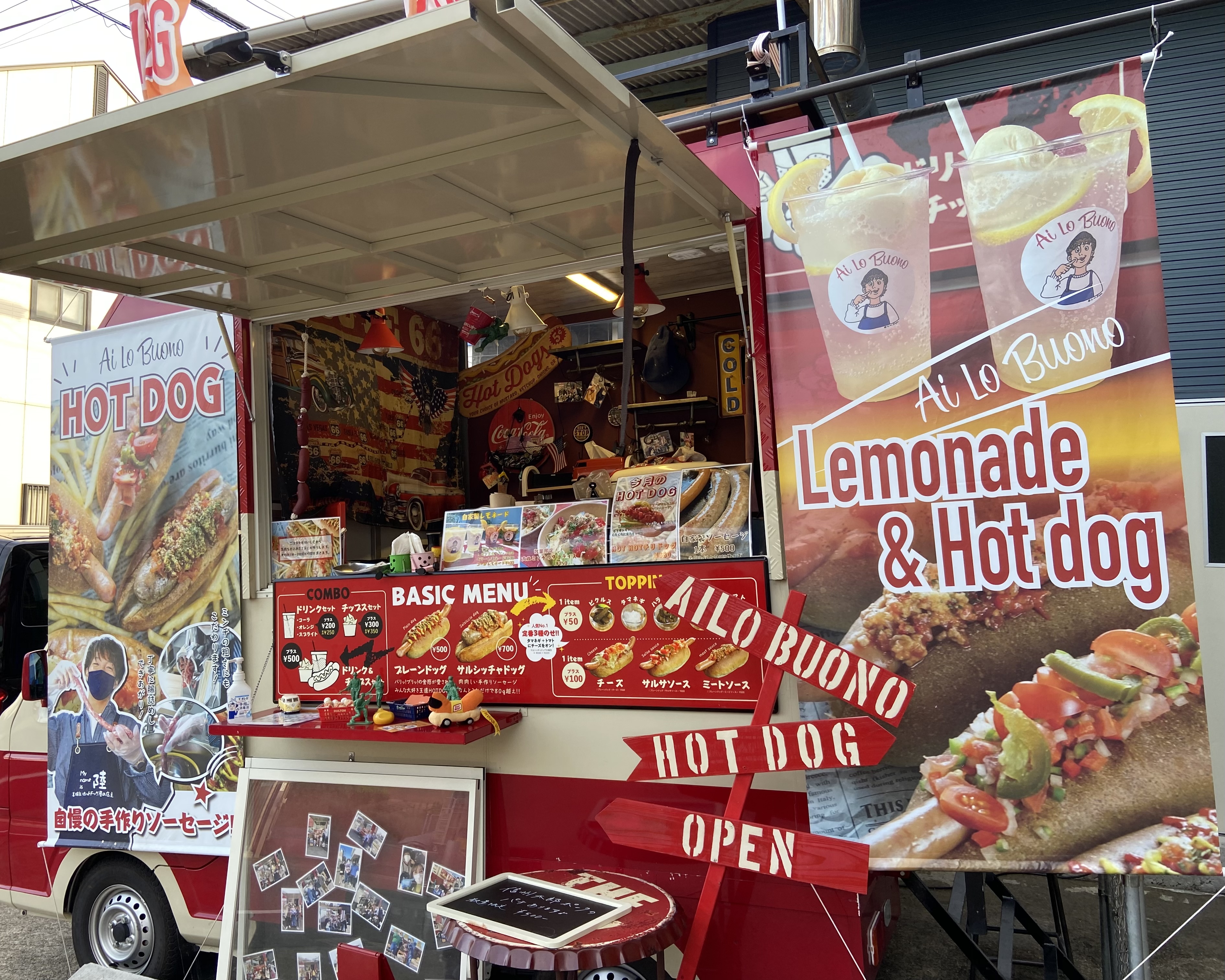 遠くからでもかなり目立つ真っ赤なアメリカン雑貨屋のようなキッチンカー