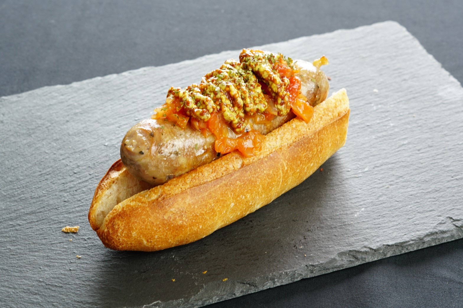 ハーブや胡椒が効いた肉肉しい手作りソーセージと天然酵母にこだわったパンのコラボレーション