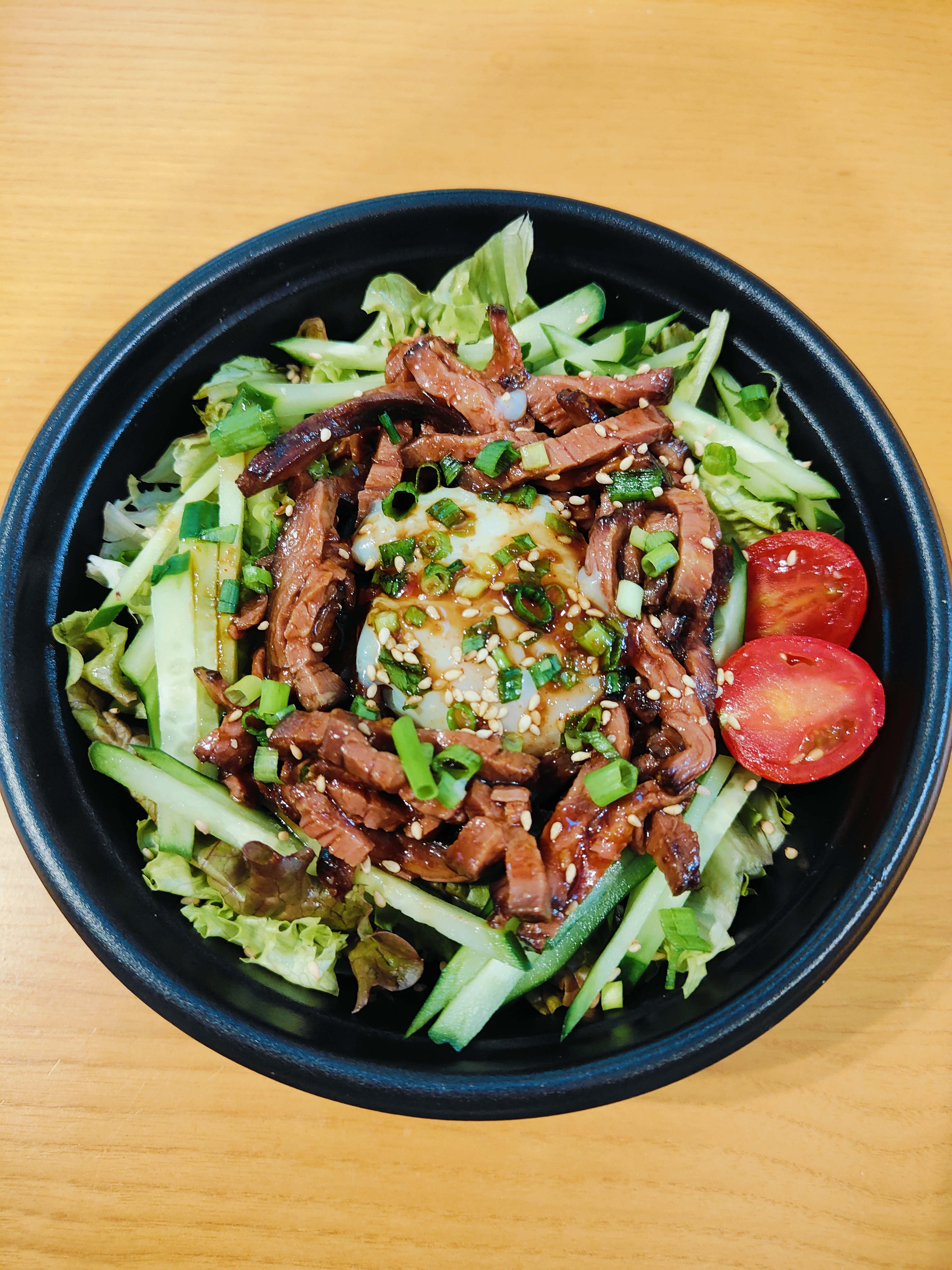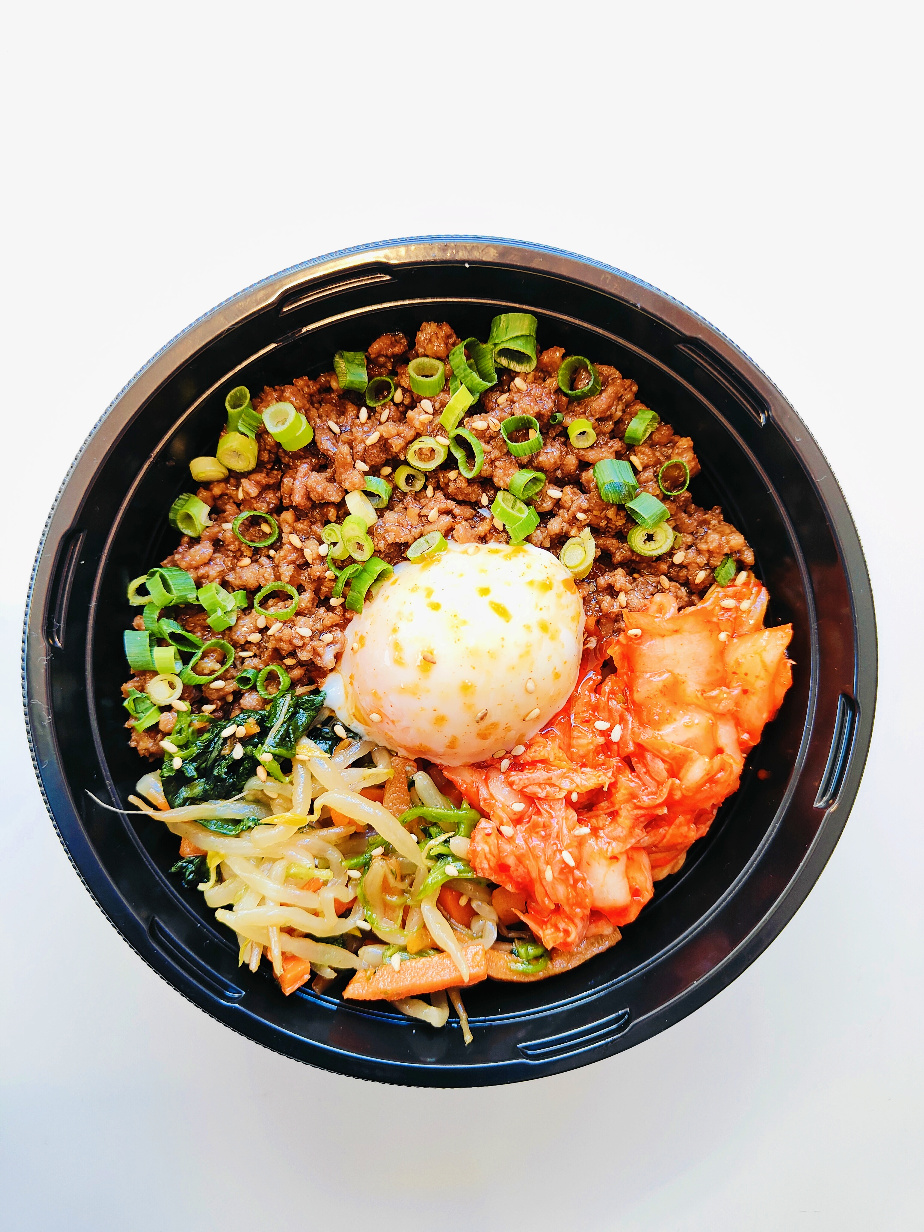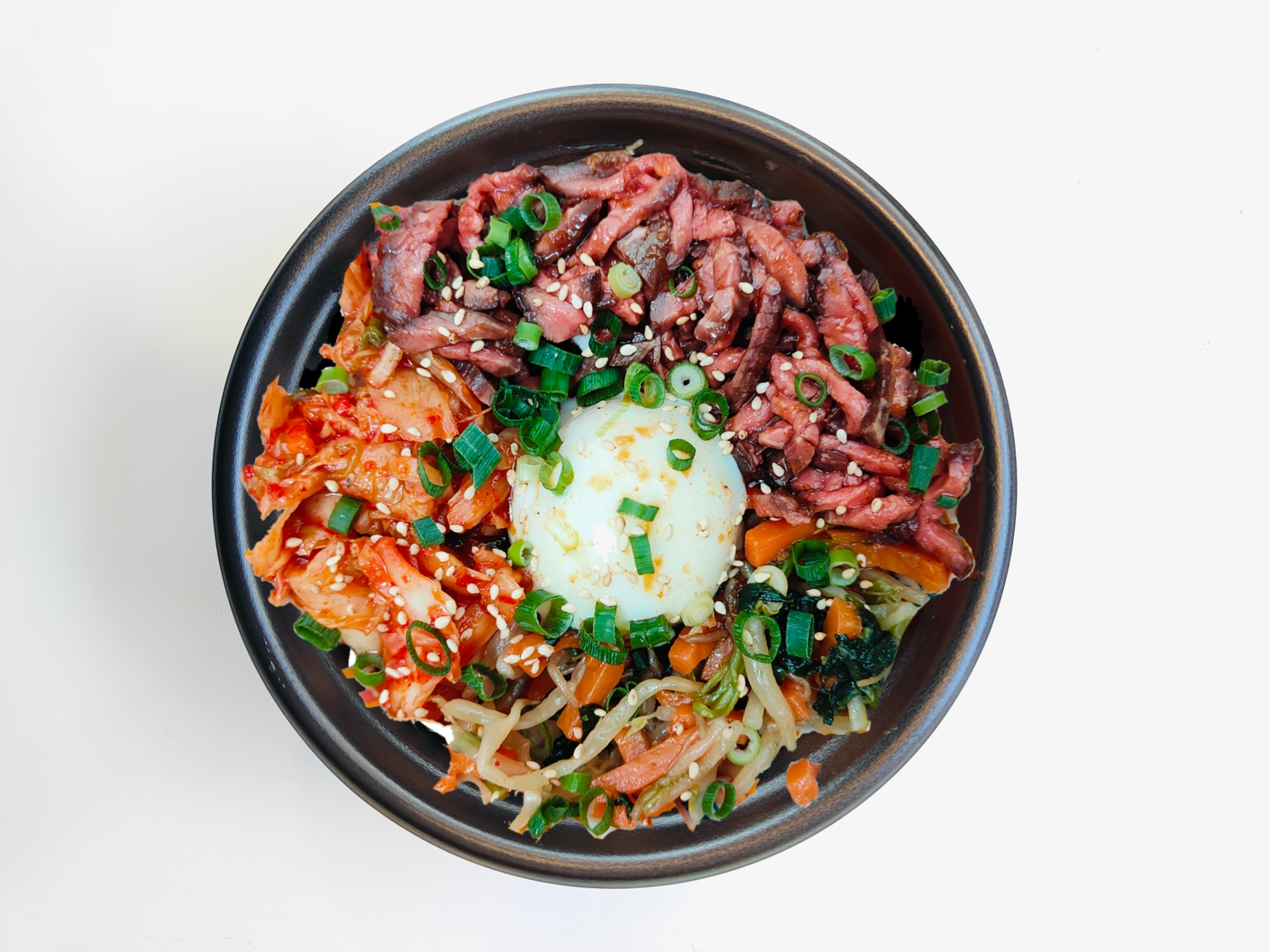 ローストビーフユッケ風丼、ビビンバ、そぼろキムチ丼