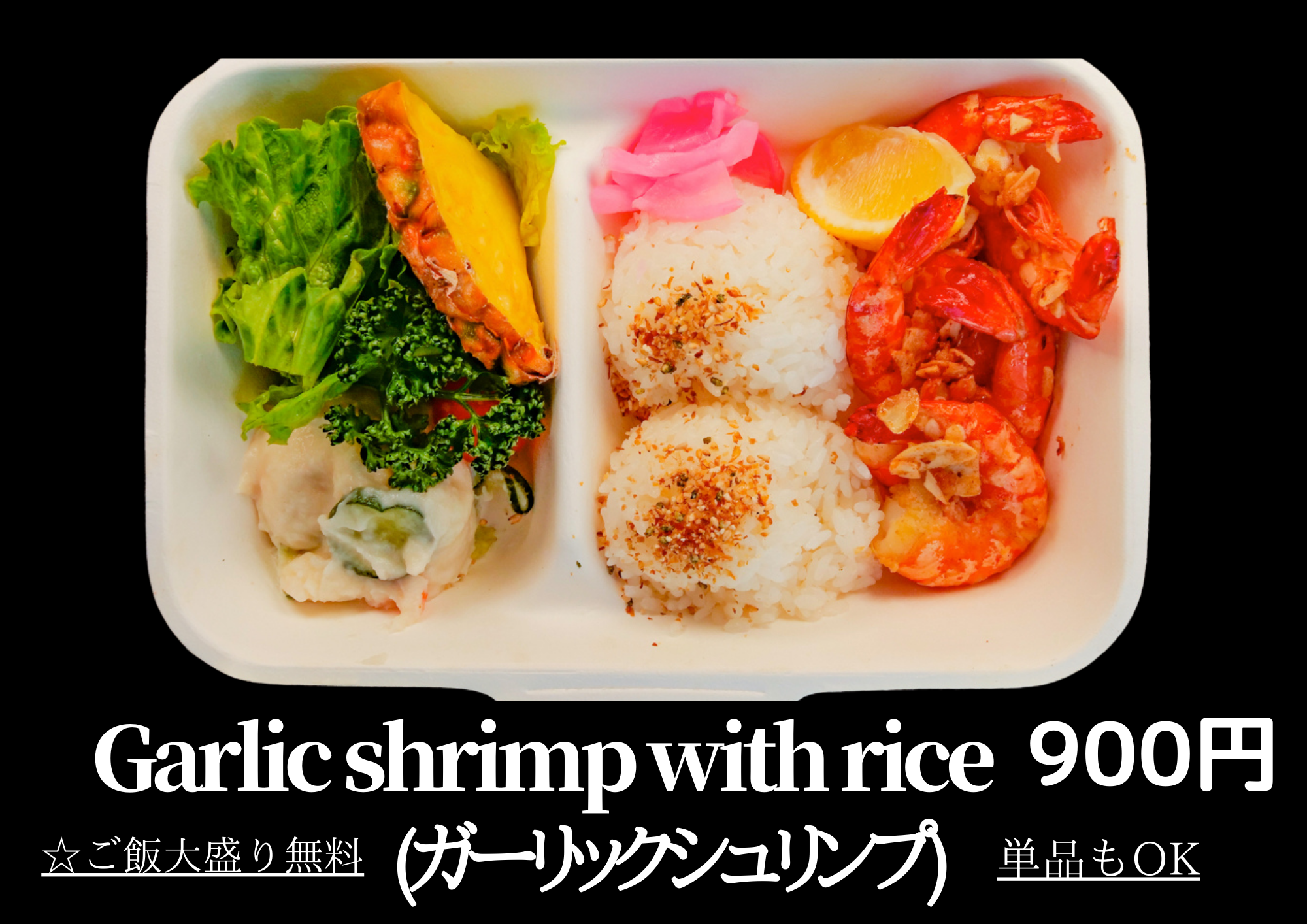 ロコモコ、ガーリックシュリンプ、スパムむすび
