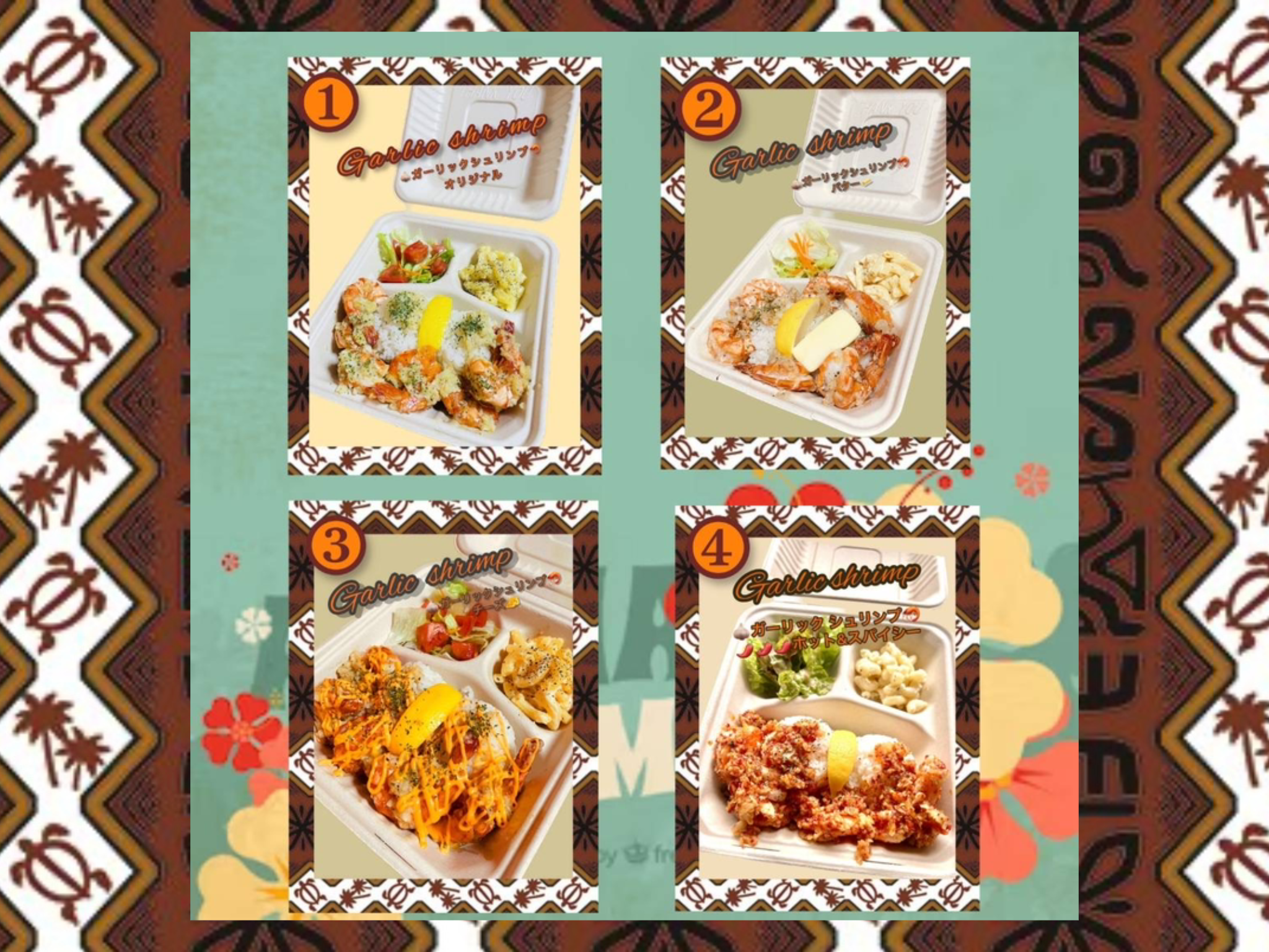そんなハワイ大好きなシェフが作るガーリックシュリンプは味が4種類!