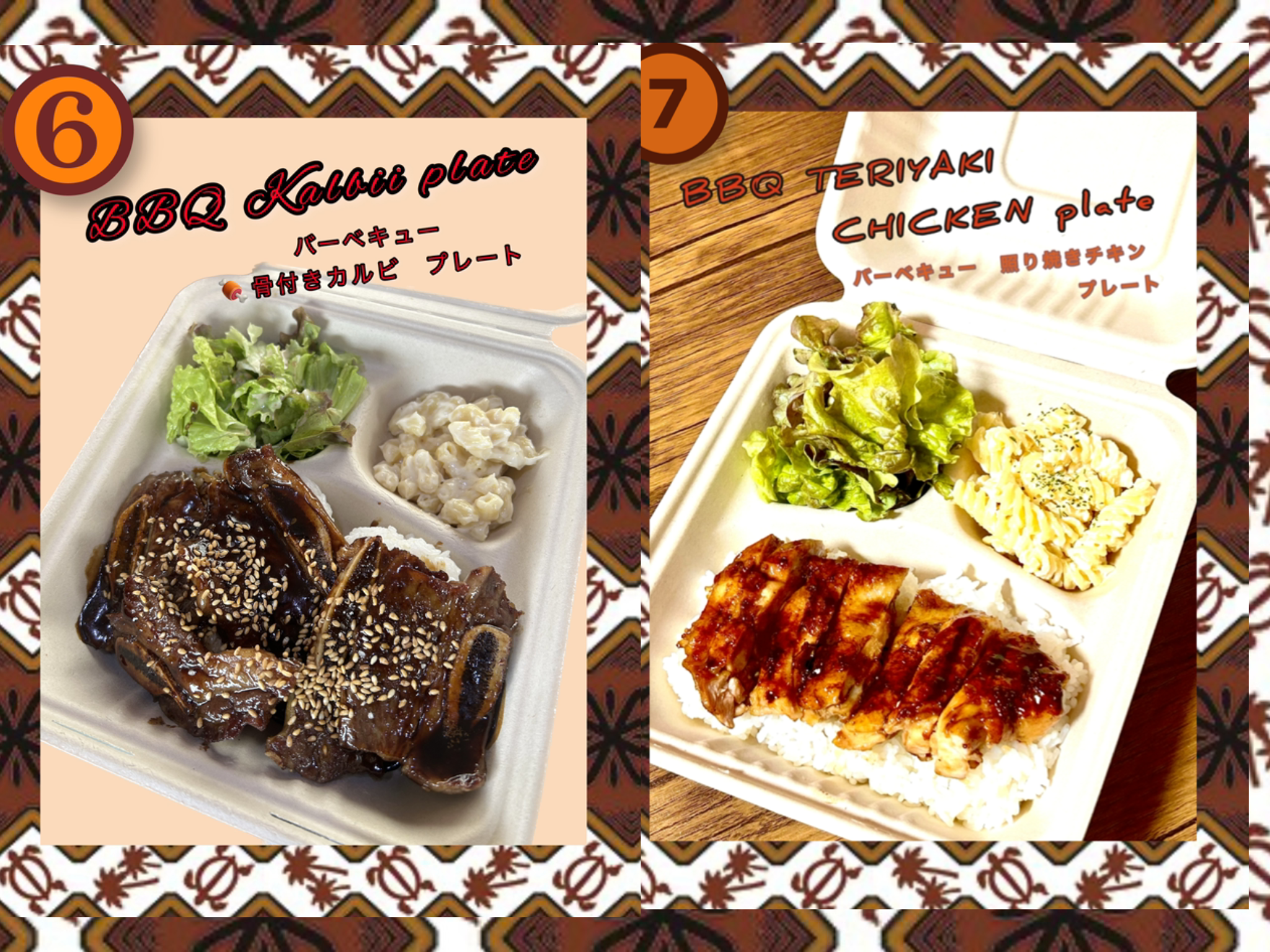 ガーリックシュリンプ、カルビプレート、テリヤキチキン、チャウメン、他