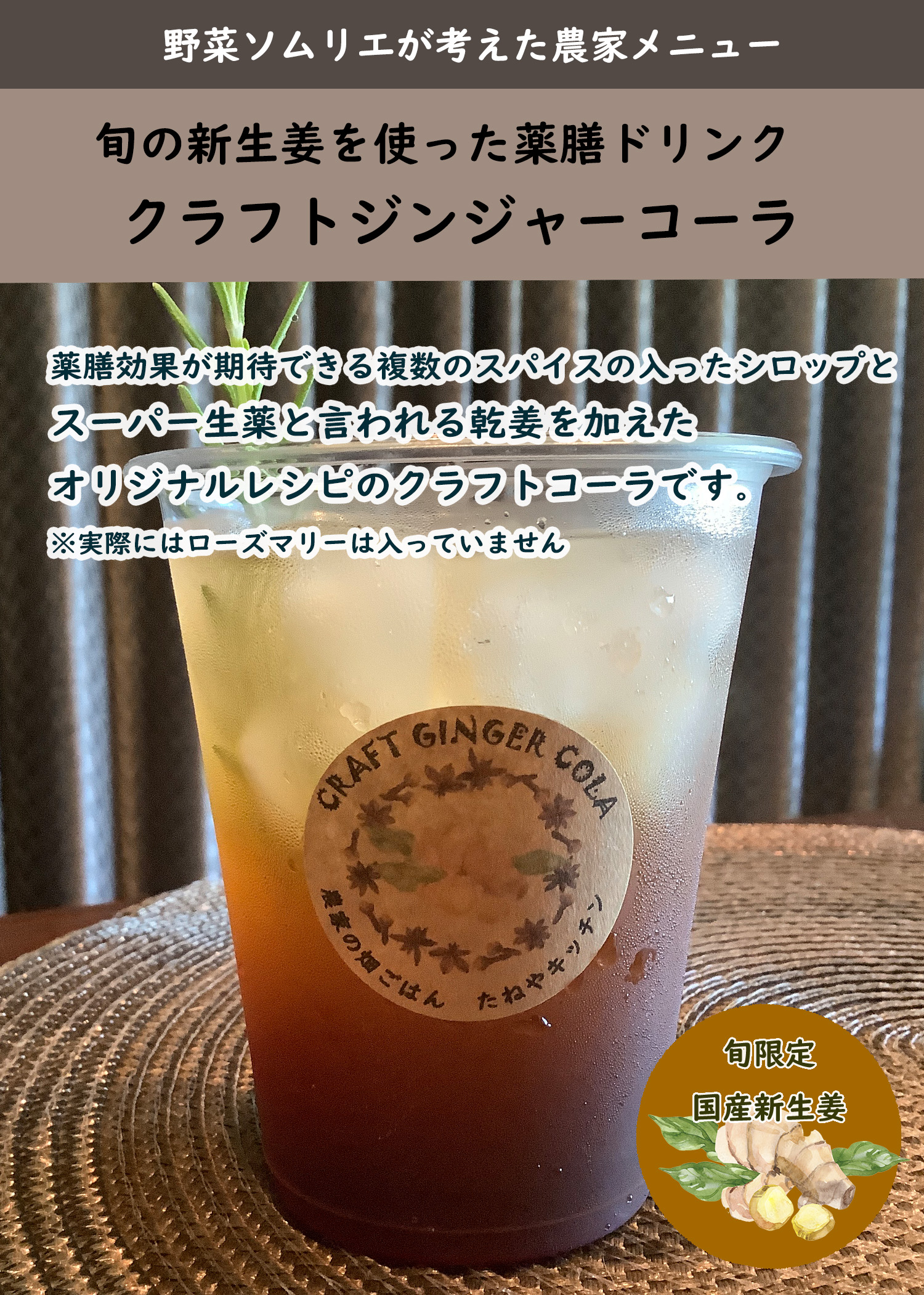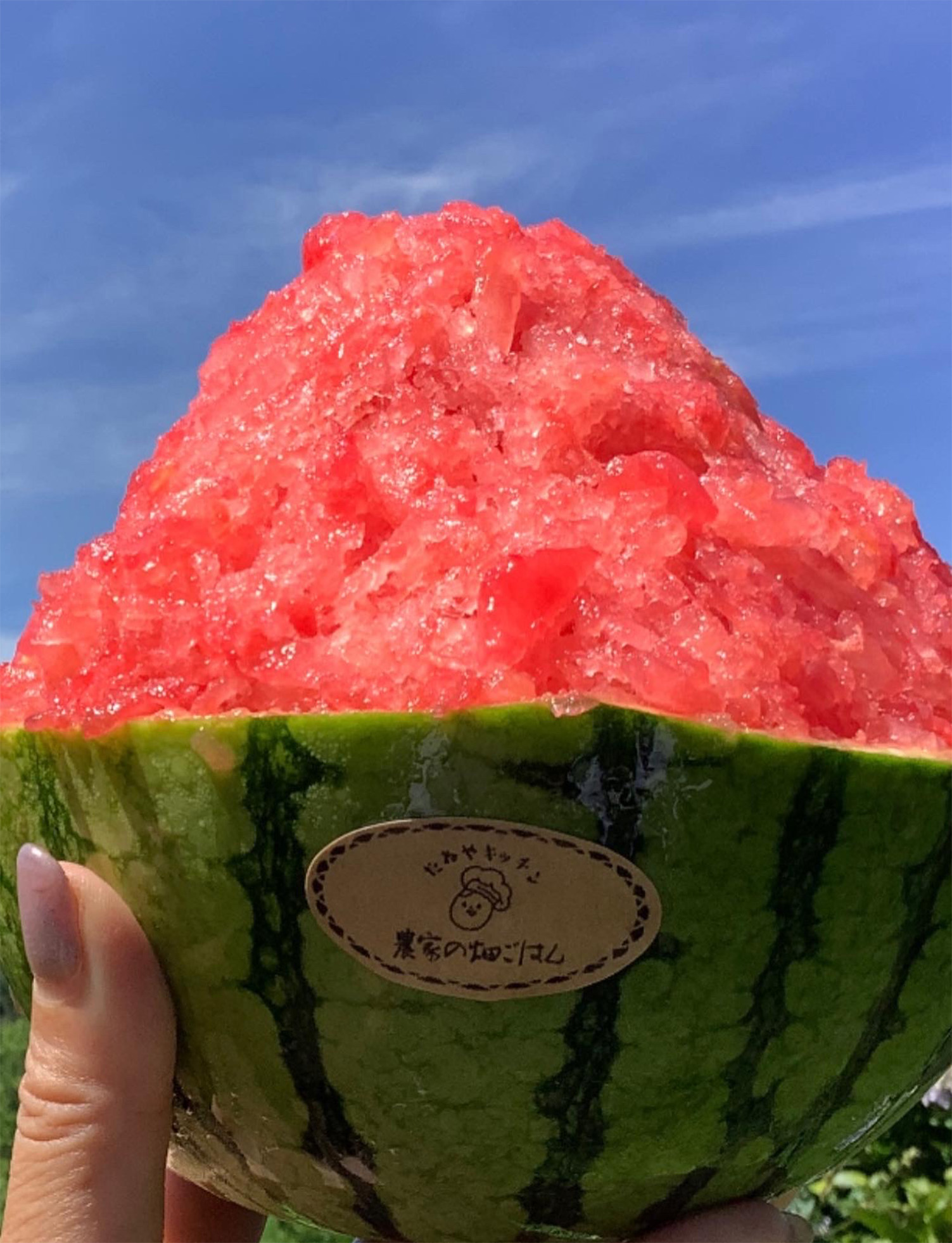 農家という強みと、野菜ソムリエとしての知識を活かして、千葉の土壌にあった、野菜を育てて旬ならではの味をお届けしています。夏は姉崎スイカと姉崎メロンの美味しい実をそのまま凍らせ削ったかき氷!や、筍、ジャガイモ、かぼちゃ、サツマイモなどを一番美味しくシンプルに味わえるメニューも豊富です。