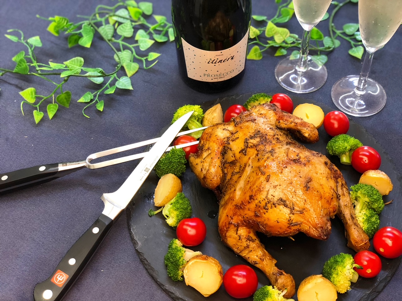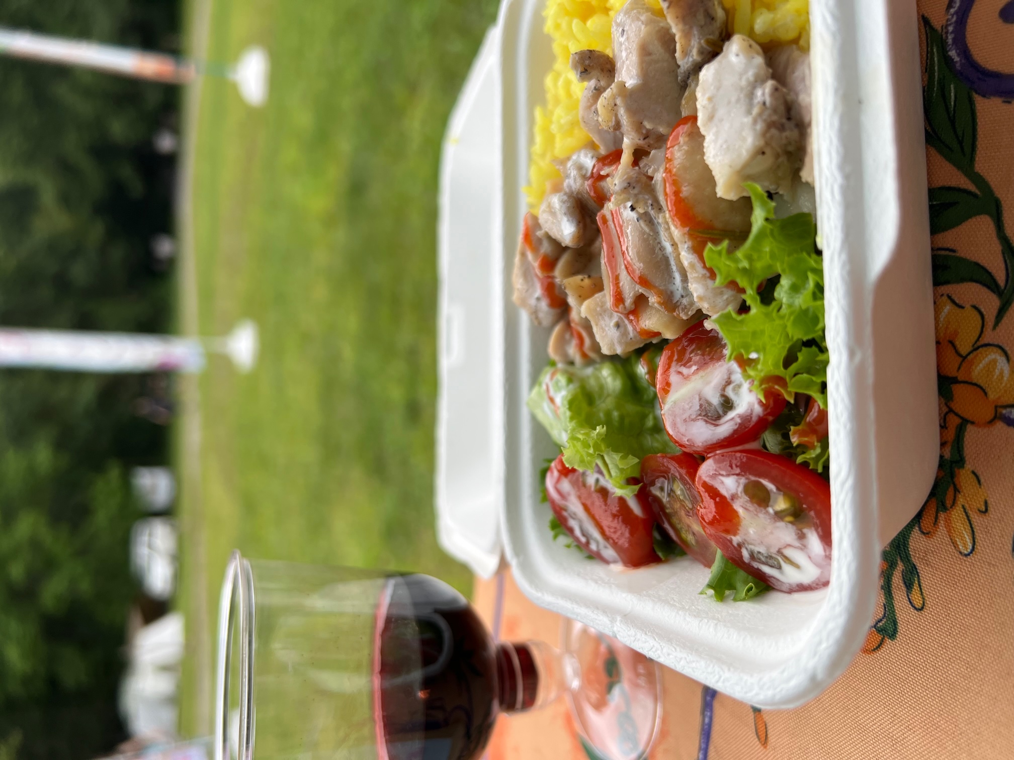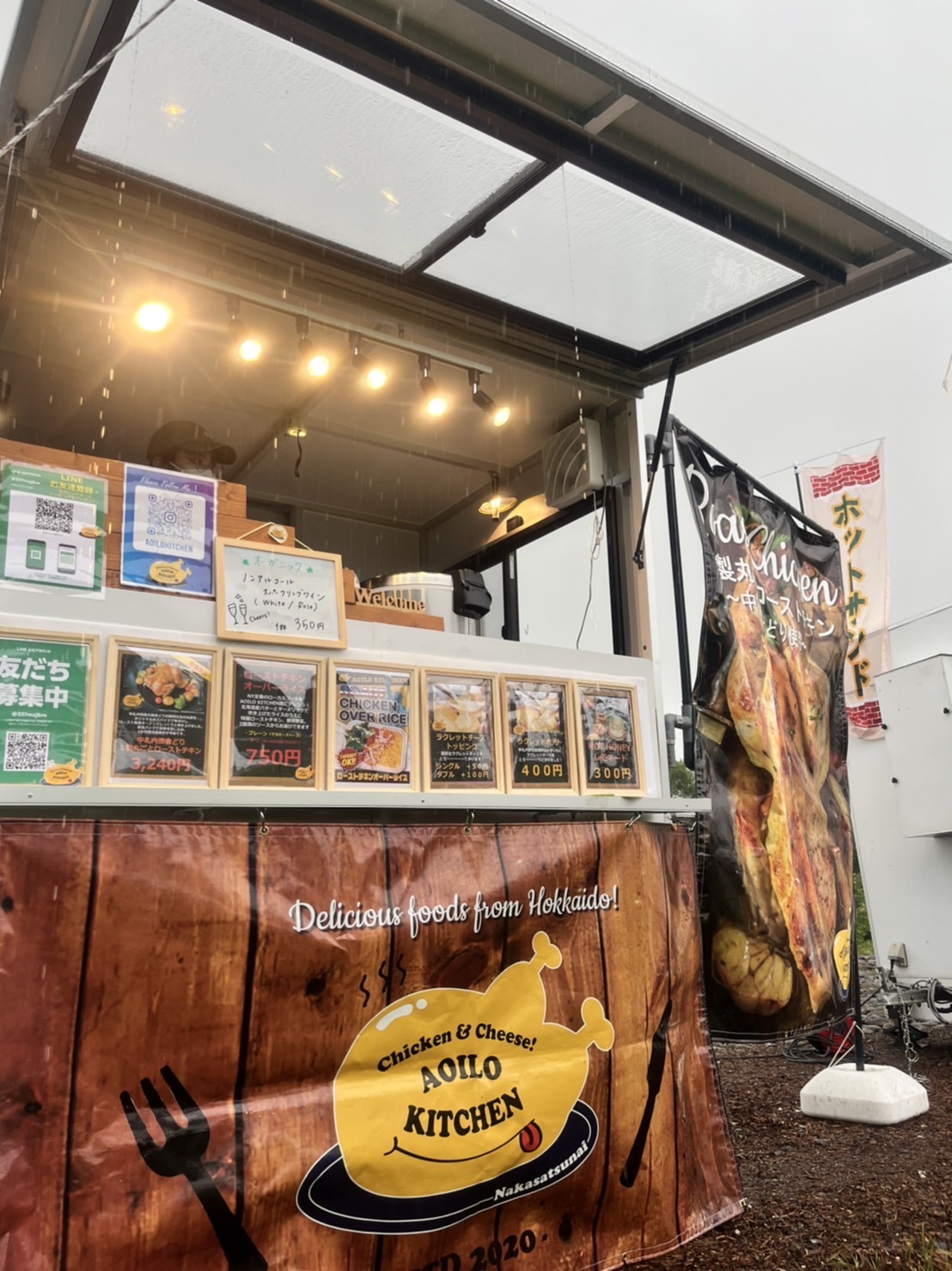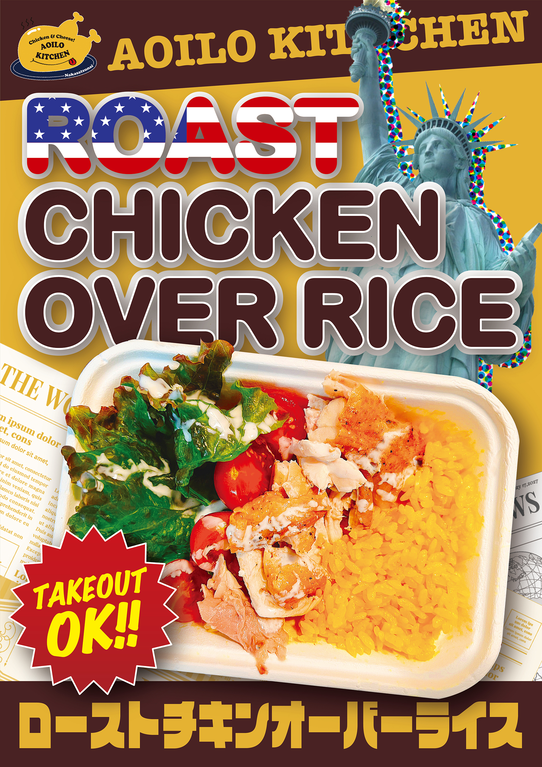 ローストチキンサンド、チキンオーバーライス、ワイン