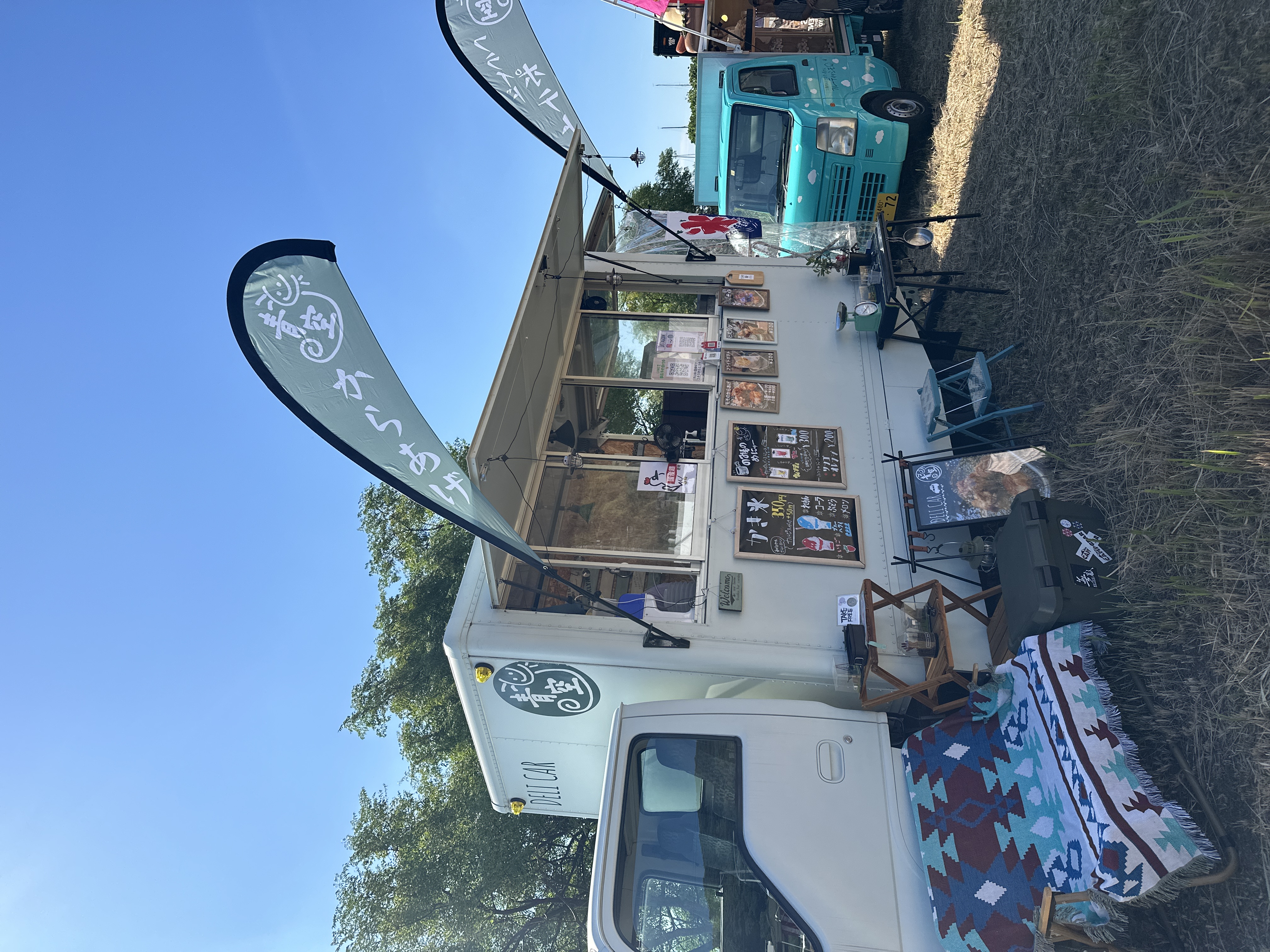 店主自前のキャンプグッズを使ってレイアウトし、アウトドアにマッチするキッチンカーとなっております。
