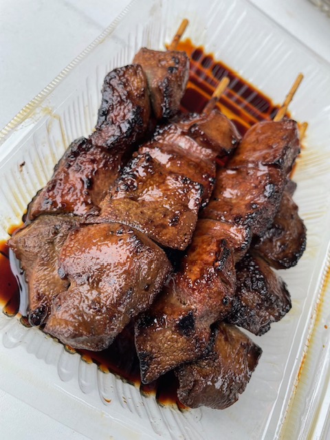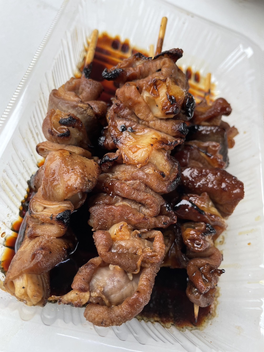 焼鳥なので、座っても、歩きながらでも食べれるというメリットがあります。