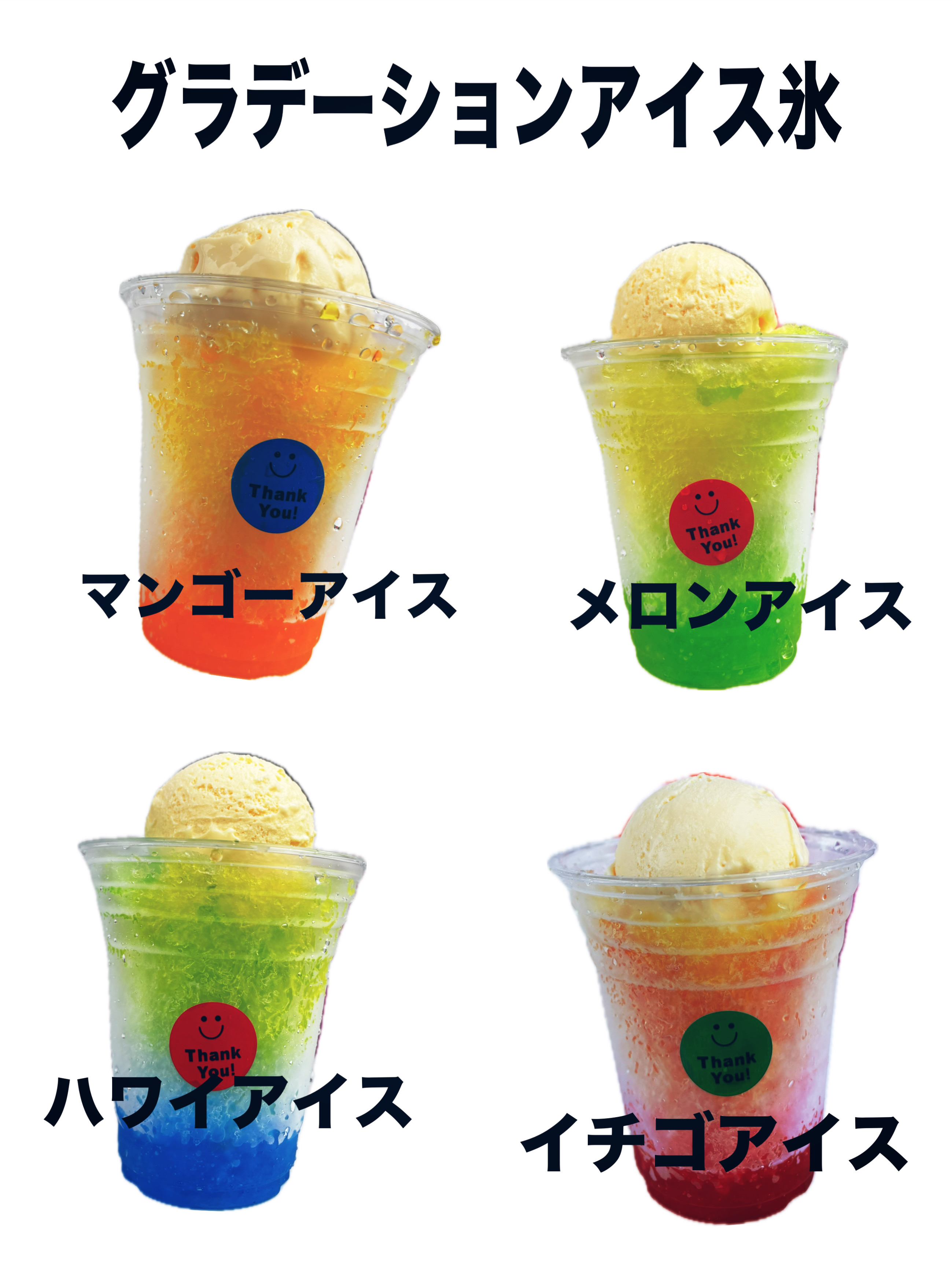 ・生ベビーカステラ・いちご飴・りんご飴・かき氷・ポップコーン・ドリンク・アルコール等