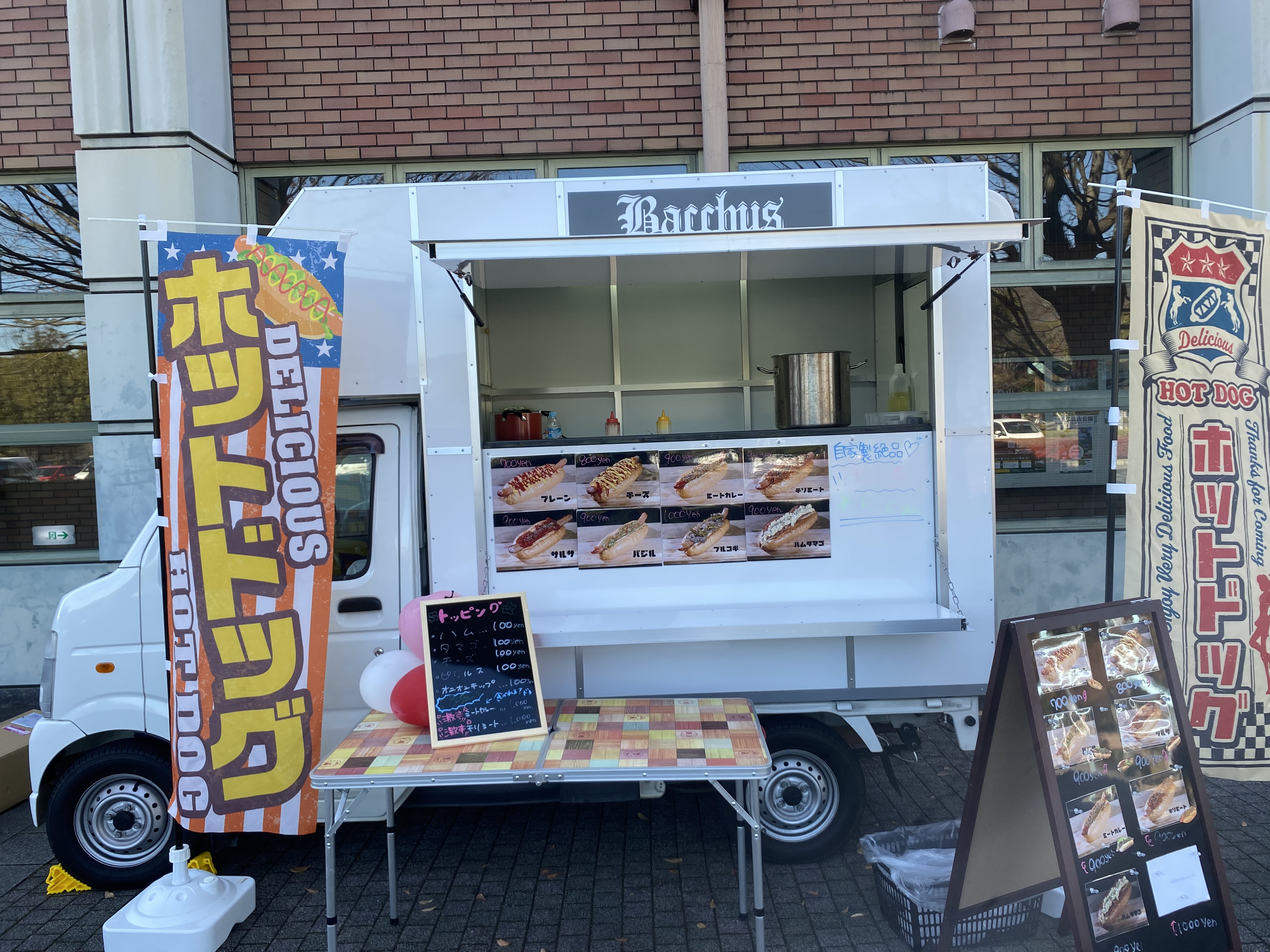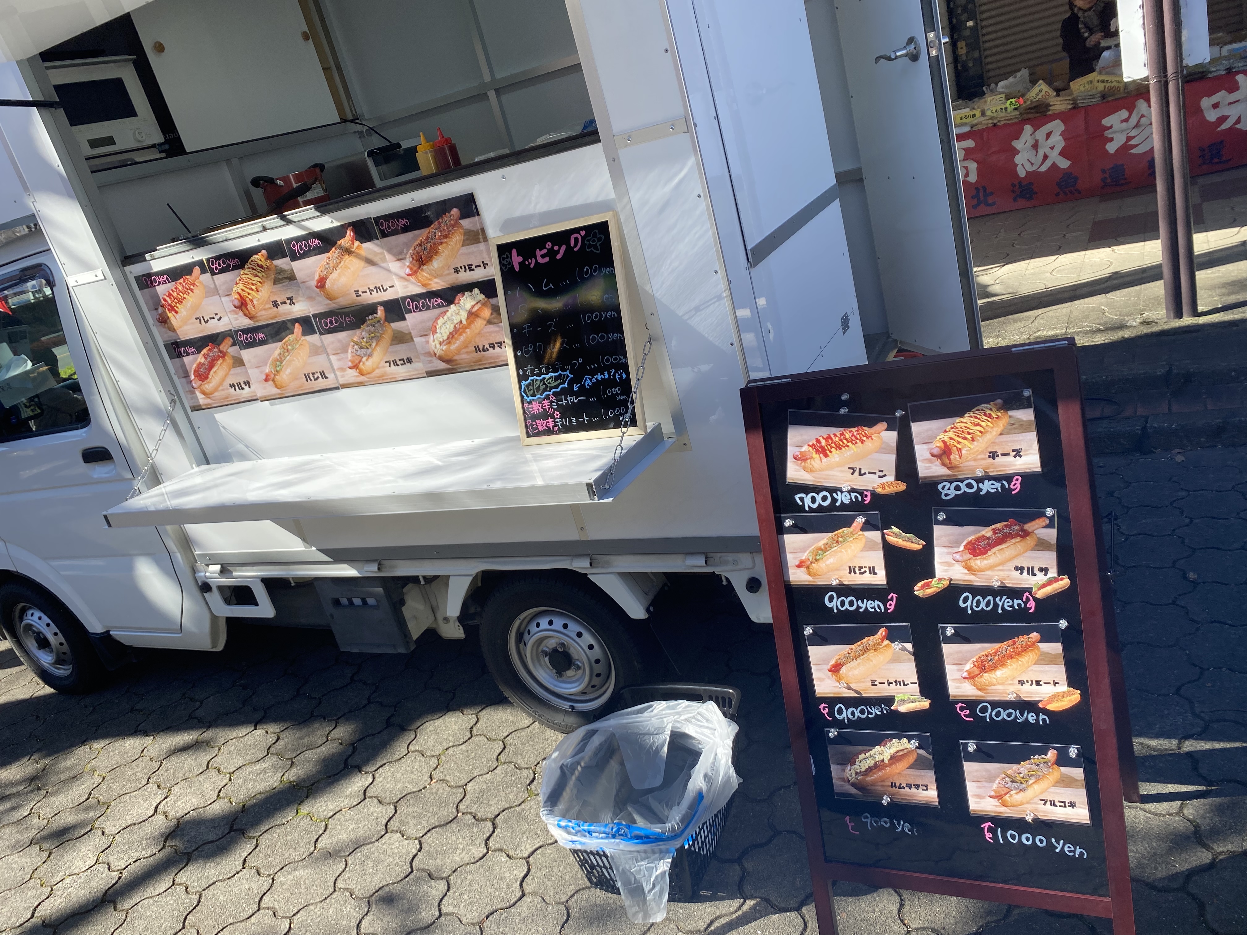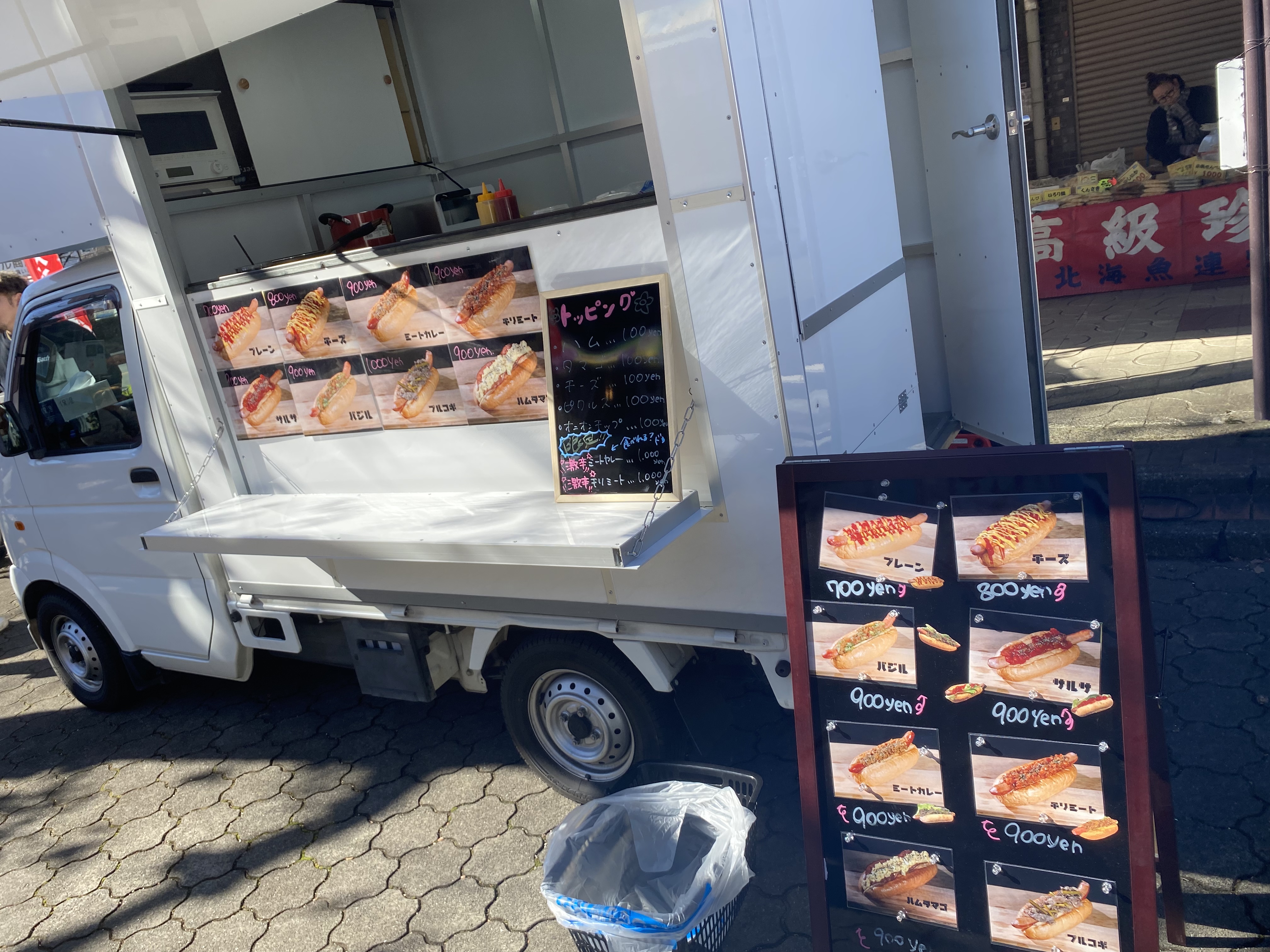 私たちのキッチンカーはホットドッグを売っております!片手で楽々に食べれて美味しいです!