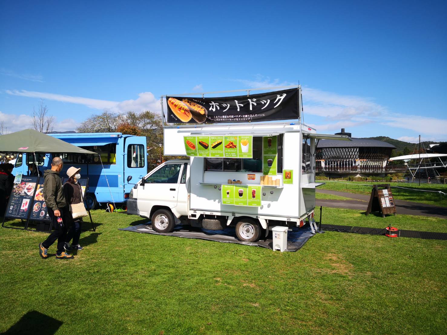ホットドッグ、からあげ丼、フライドポテト、唐揚げ、チキンナゲット、ドリンク、スムージー、フランクフルト、コロッケ、パフェ、竹あかりなど竹製品の物販も可