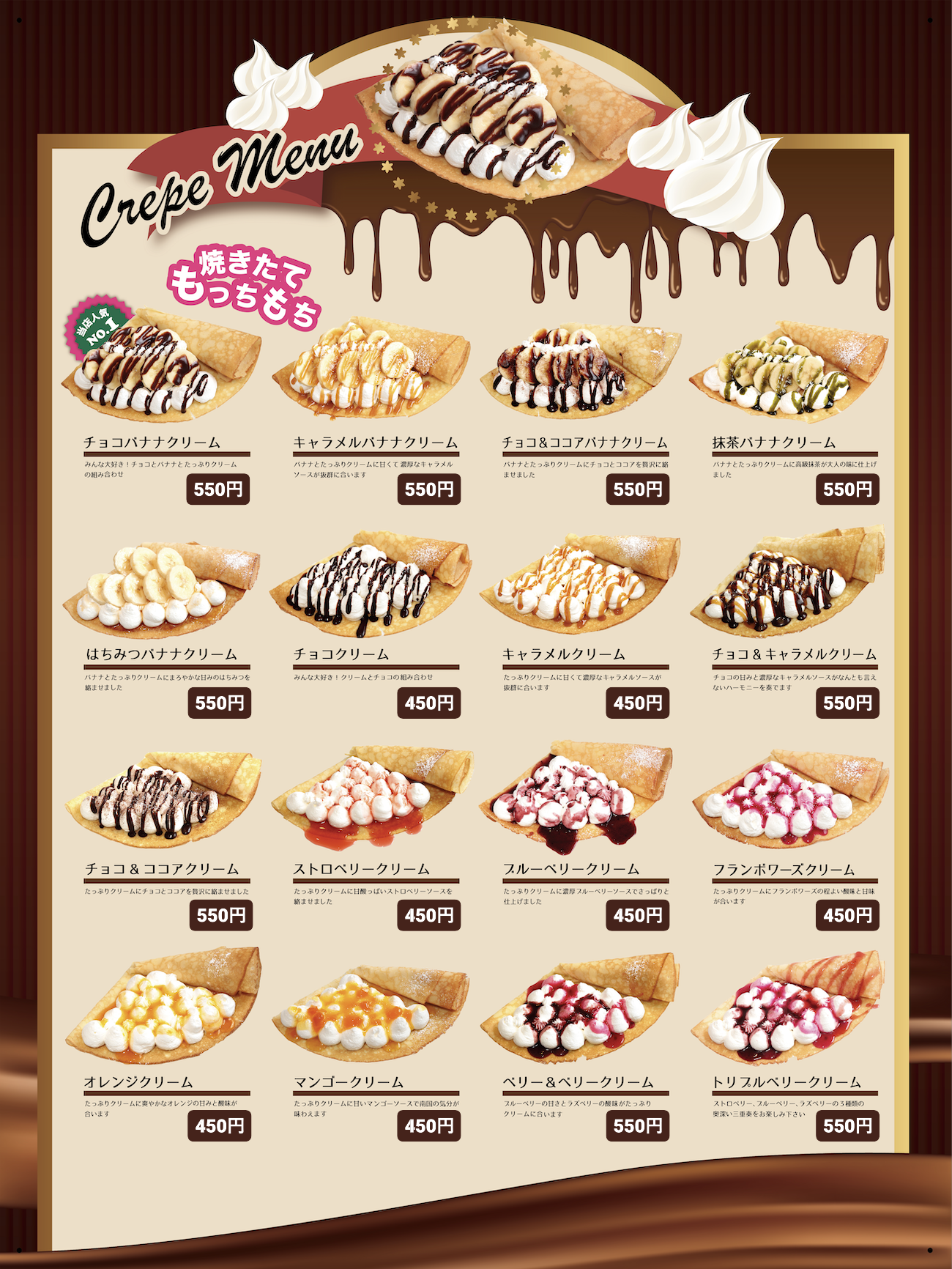 もちもちとした生地の出来立てクレープをお楽しみください。