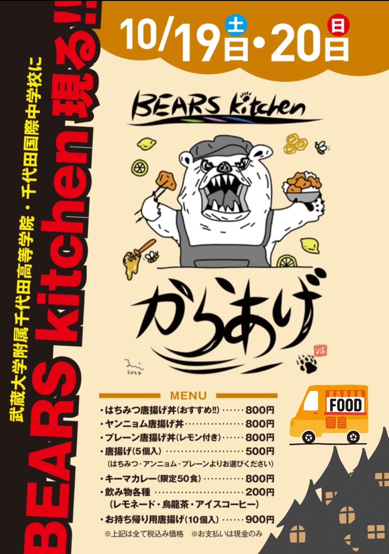 BEARS kitchenでは、唐揚げをメインに、国産にこだわり、安全で美味しく”をモットーに、家族を思うような食の提供を心掛けています。老若男女問わず、ぜひたくさんの人に食べていただきたいです。これまで、社会福祉施設・中高学園祭・商工会議所など多くの場所で出店してきました。その場所のニーズに応じて商品開発をしています。