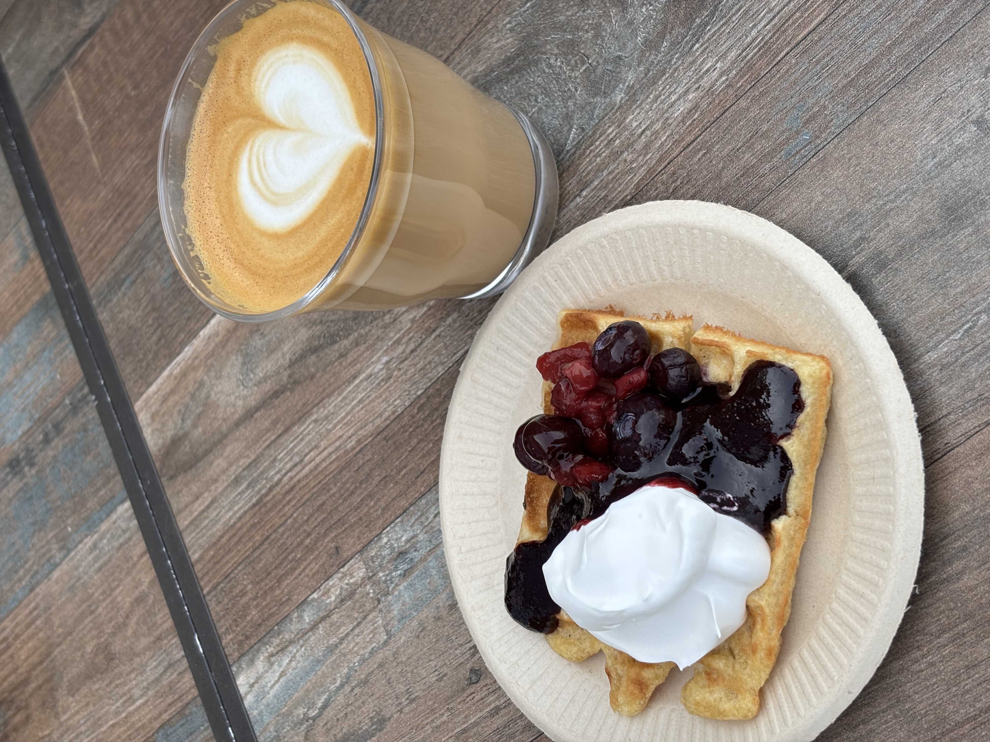 当店の焼きたて米粉ワッフルは季節のフルーツを使ったワッフルをご用意しております。是非、珈琲の香りと共にお楽しみください。