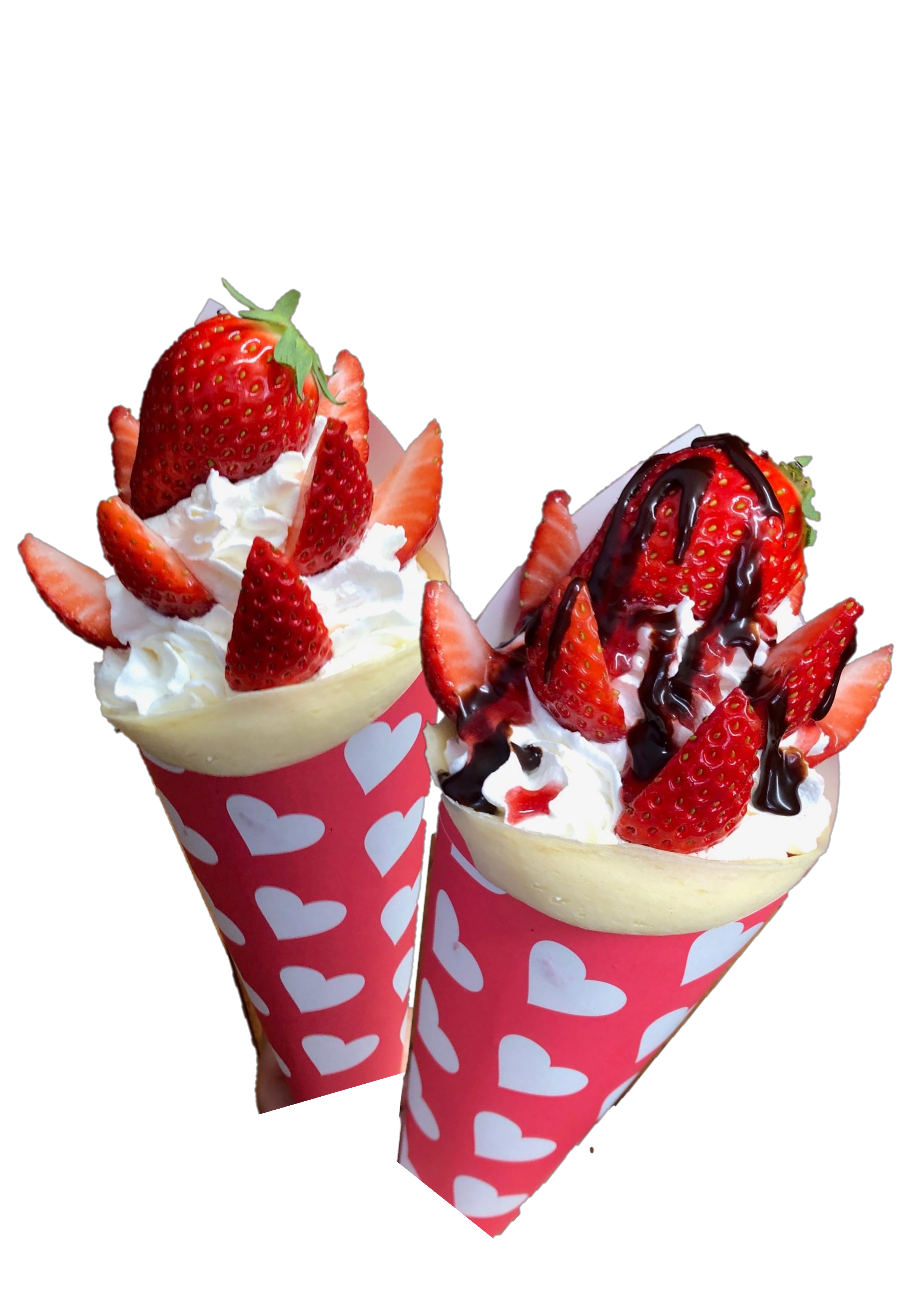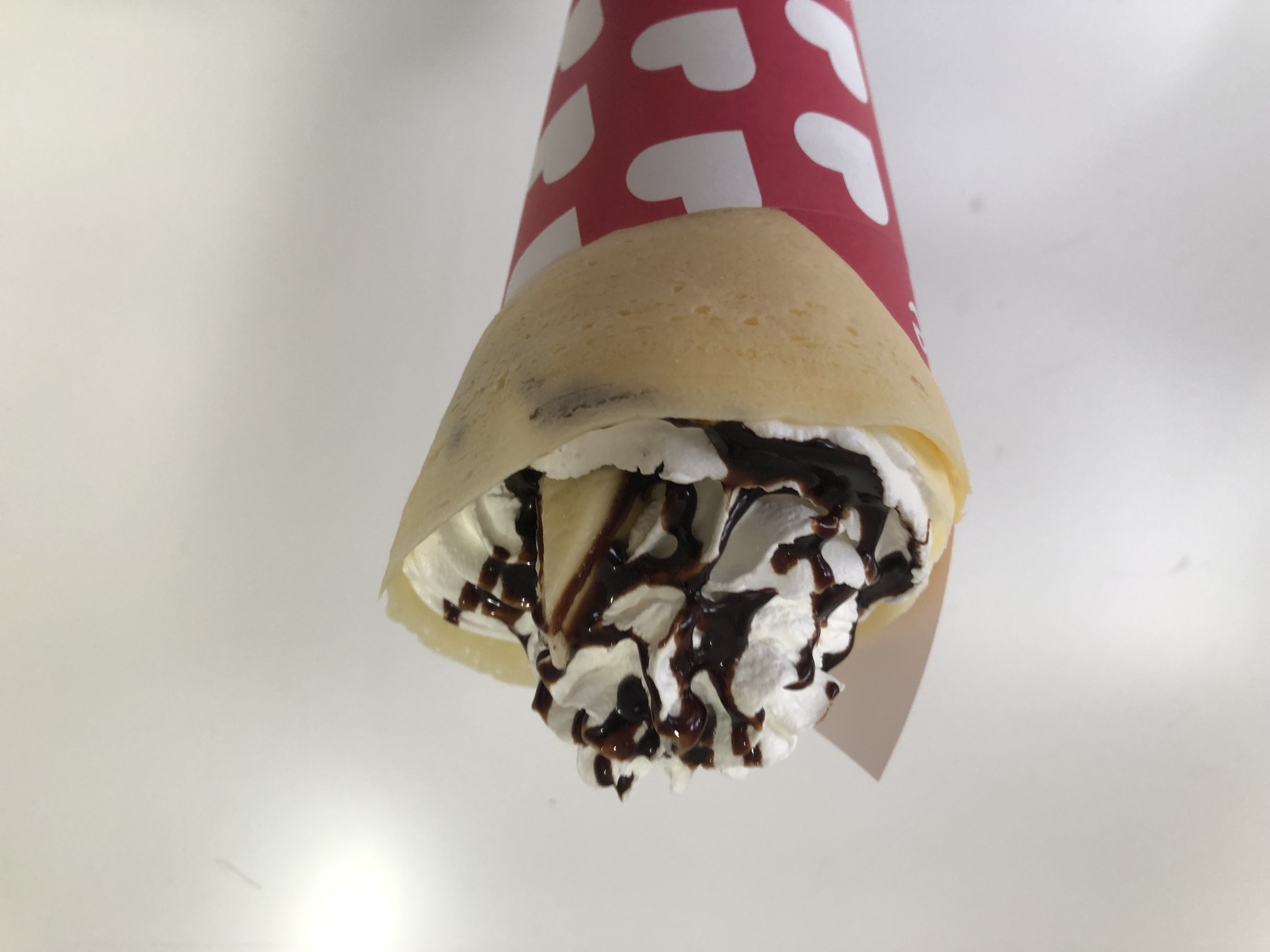 クレープは幅広いバリエーションも魅力の一つです。定番のチョコレートやバナナ、イチゴなどのフルーツに加え、抹茶やなどの和風フレーバーも人気です。また、最近では、チーズやハム、ツナなどのおかず系クレープも登場しています。ベビーカステラも新たに始めました。
