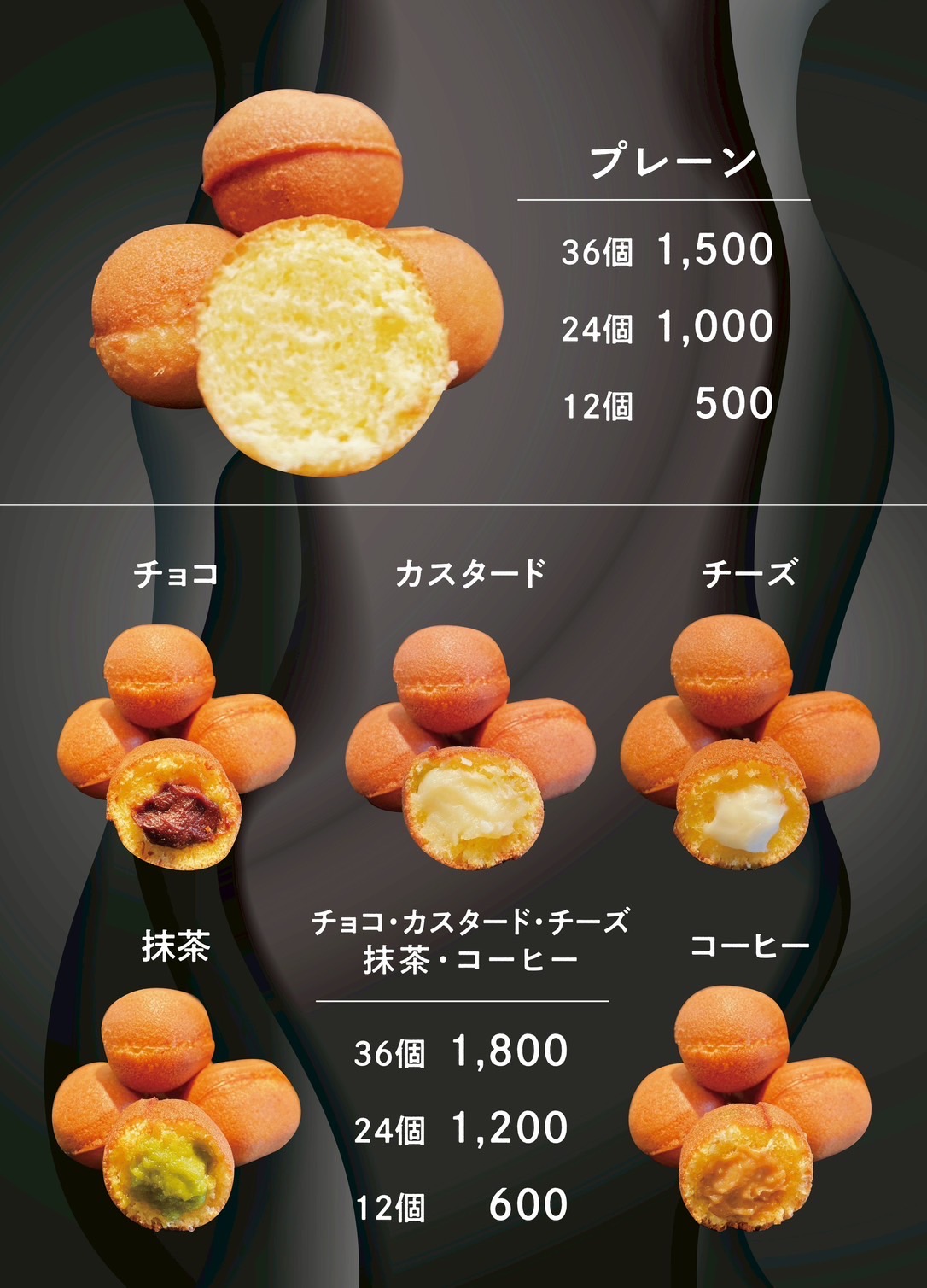 ベビーカステラには珍しい、中にクリームが入っております。5種類の味があり、皆様から支持されております。