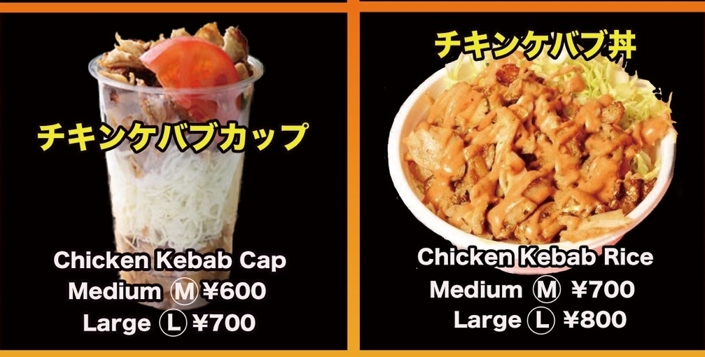 ケバブ、お弁当対応可能(生姜焼き、ハヤシライス、ローストチキン)、アフリカ料理、スムージー、ソフトドリンク、等