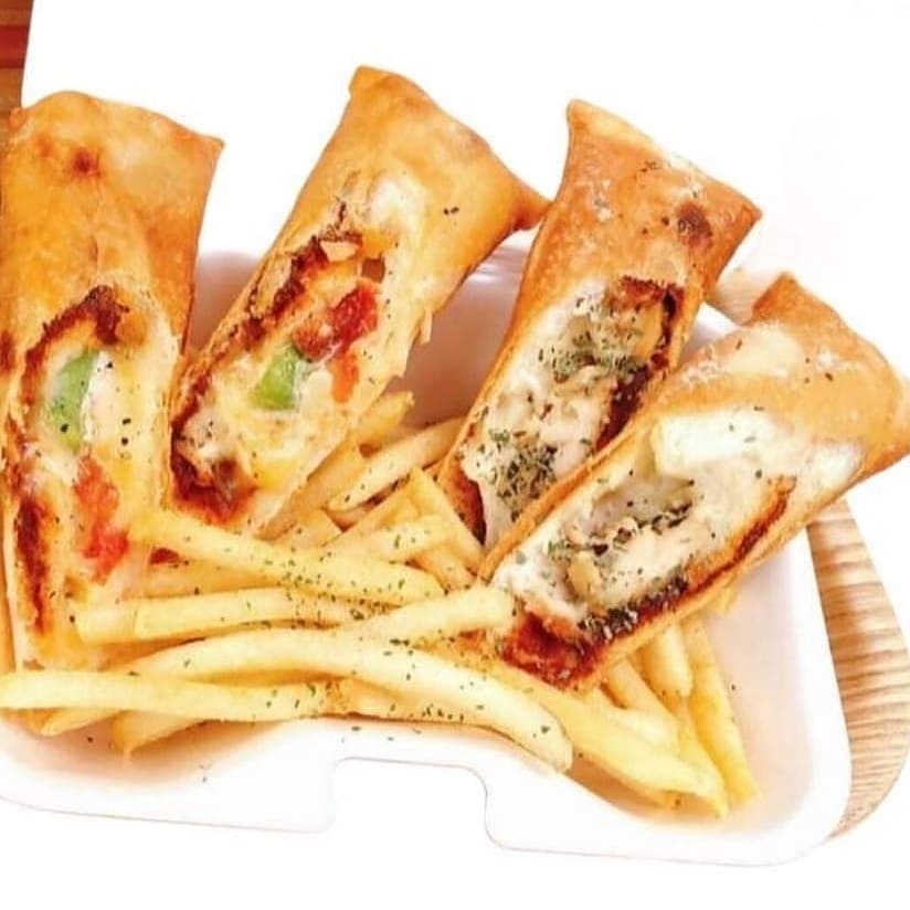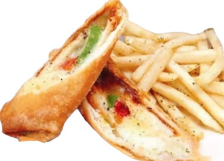 パン生地にお肉や地元特産のサボテンをくるっとロールしさらに春巻きの皮で包みあっさり国産米油でカリッサクに揚げた1品