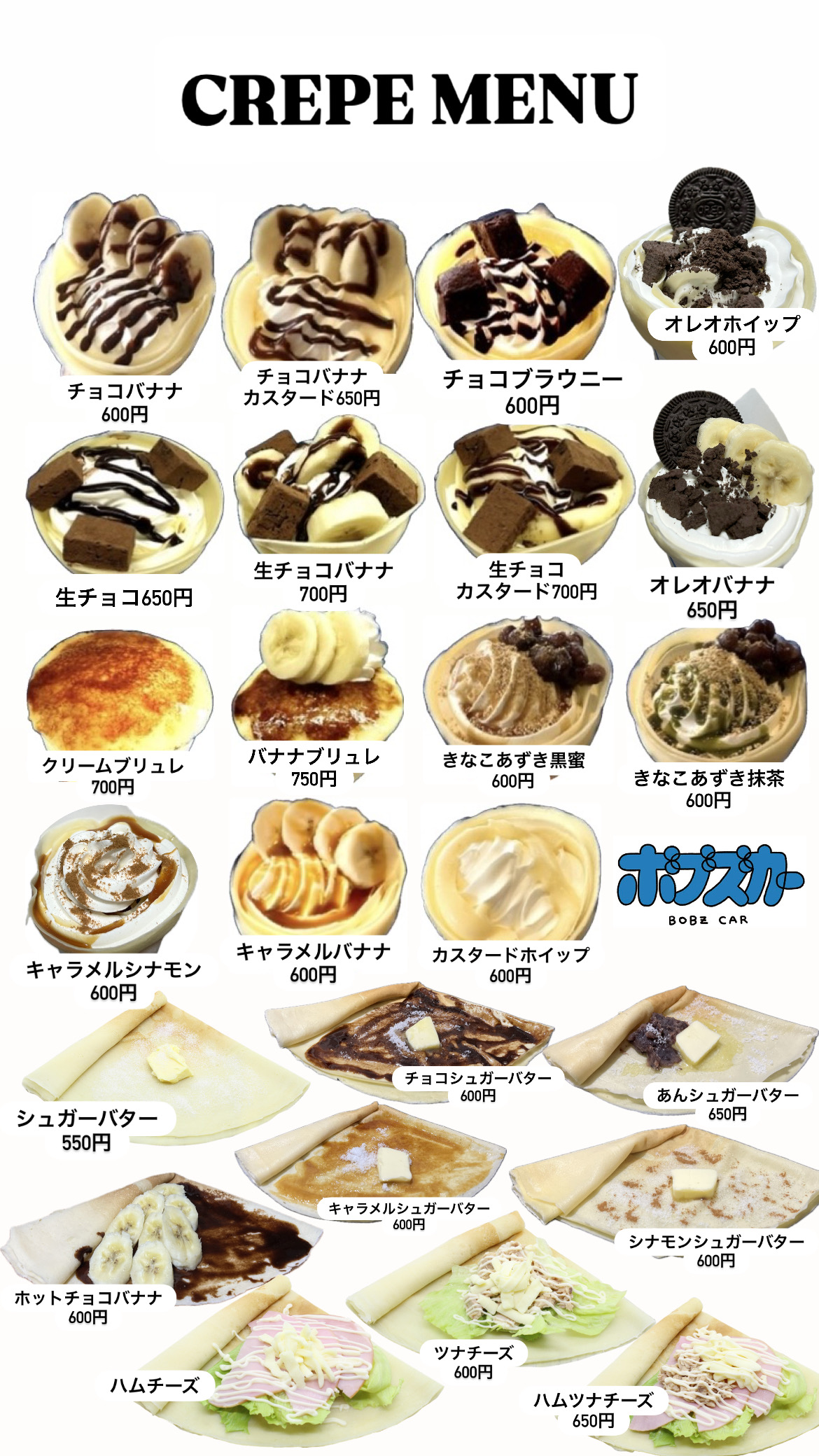 クレープ/かき氷(夏季)/ホットドッグ/コーヒー