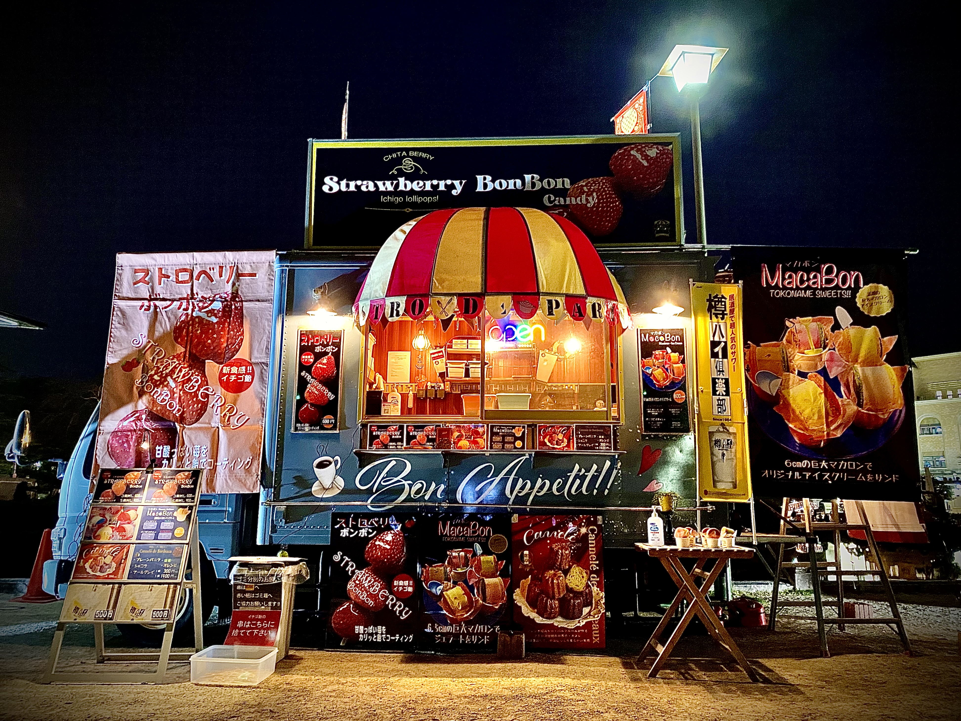 BBQコンボ、ビフトロシチュー、マカロンアイス、いちご飴、レインボーレモネード