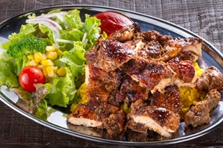 チキンオーバーライス、ジャークチキンライス、ドリンク、アルコール