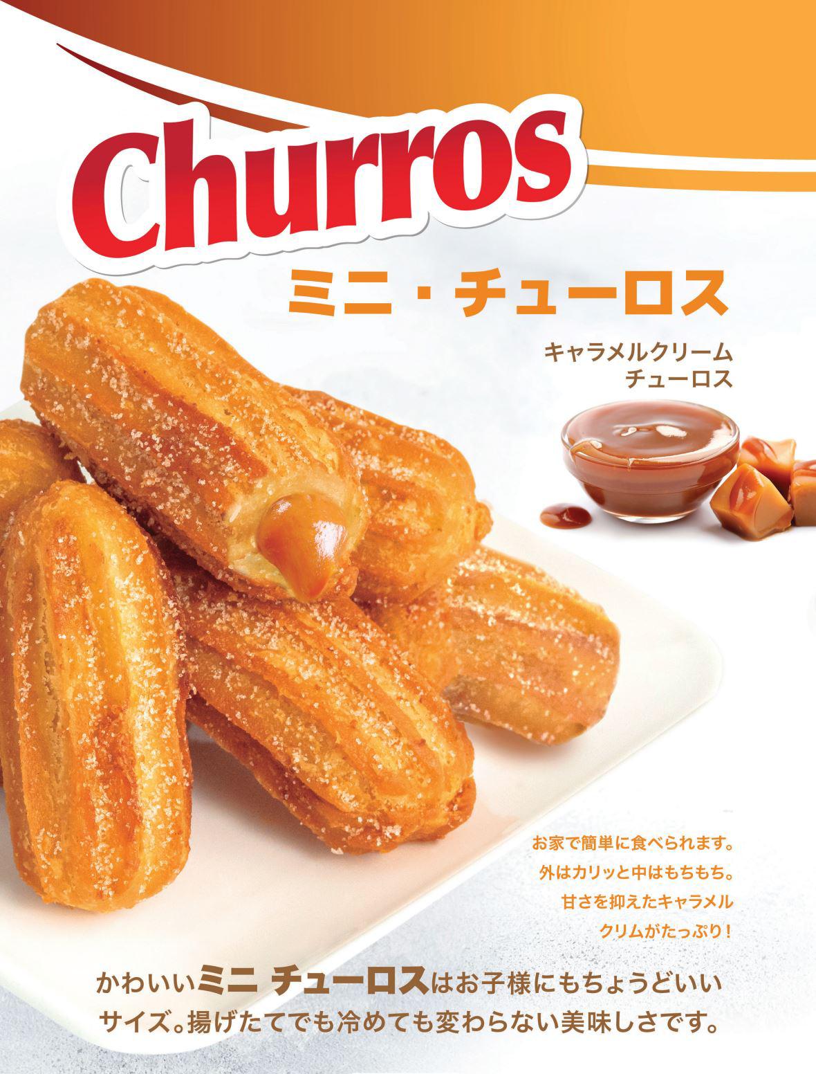 ミニ・チューロスは、中にクリームキャラメルがあり、食べた瞬間に生地とクリームキャラメルが絶妙にマッチングたまらない美味しさです。
