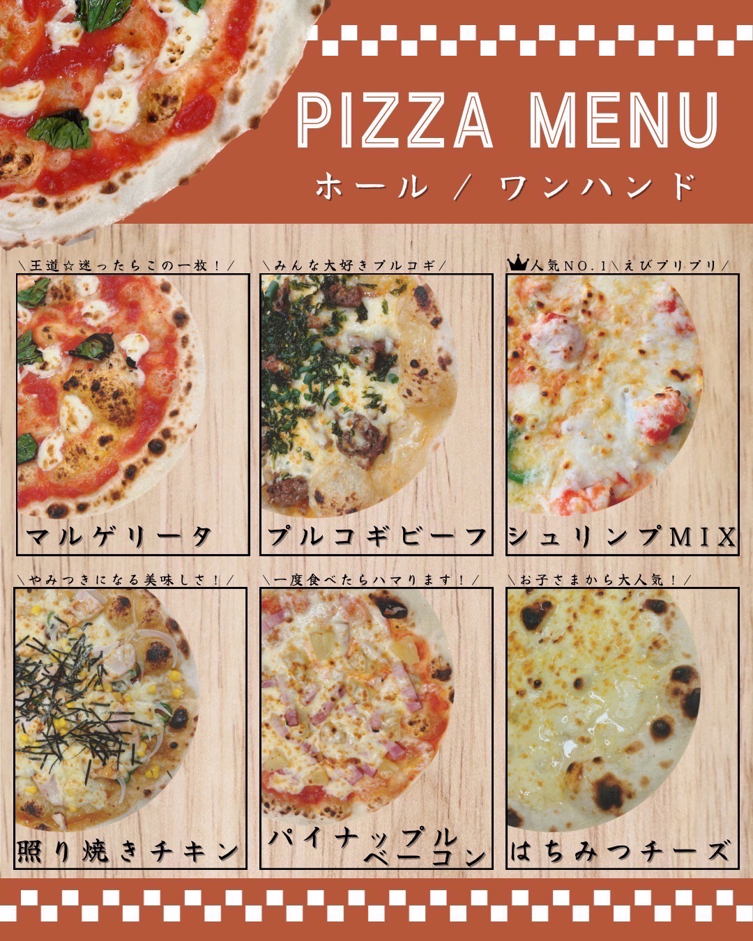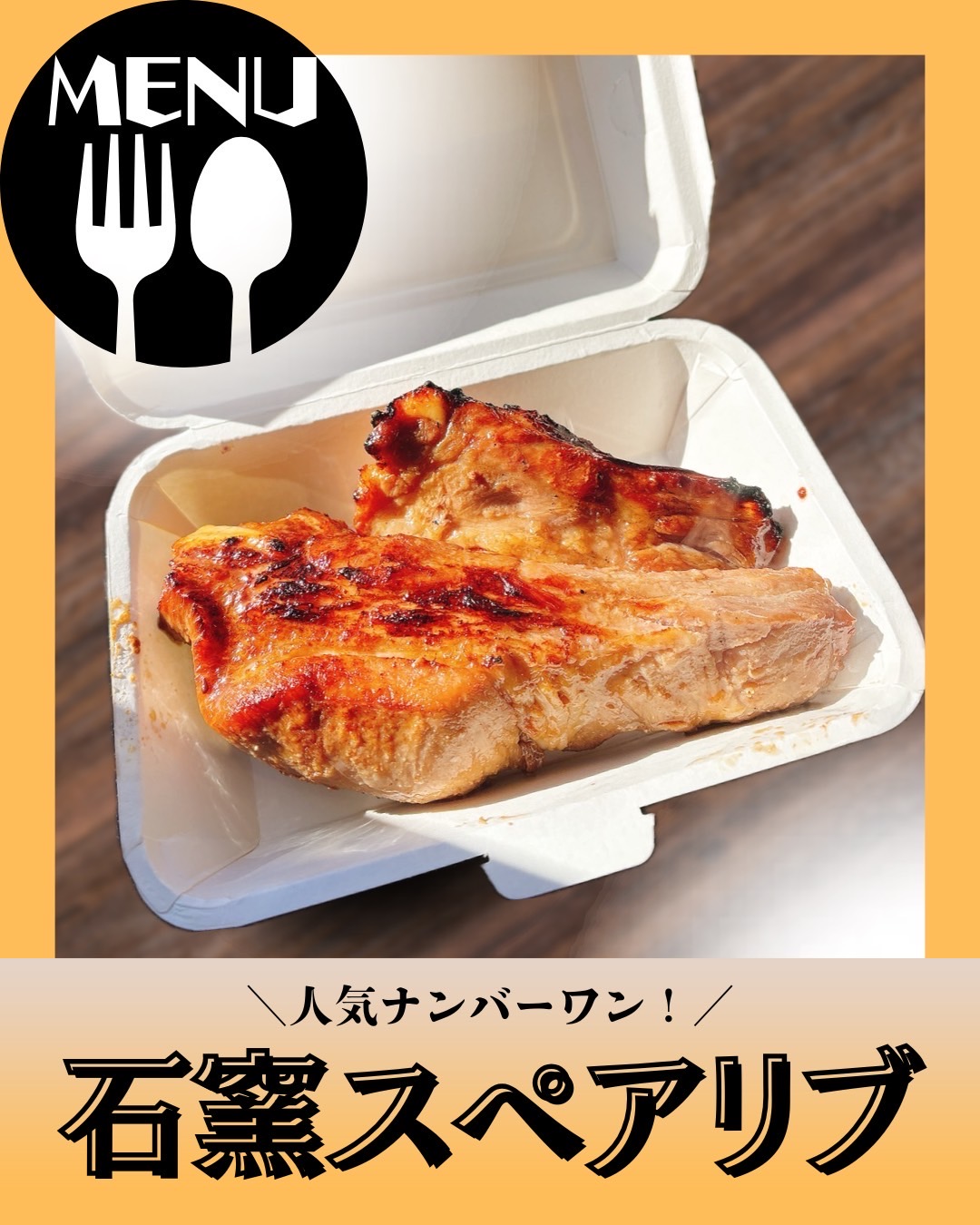 ピザは注文頂いてから焼きたてを提供しています。その他オーブンを使用してスペアリブなどのグリル料理も提供しています。