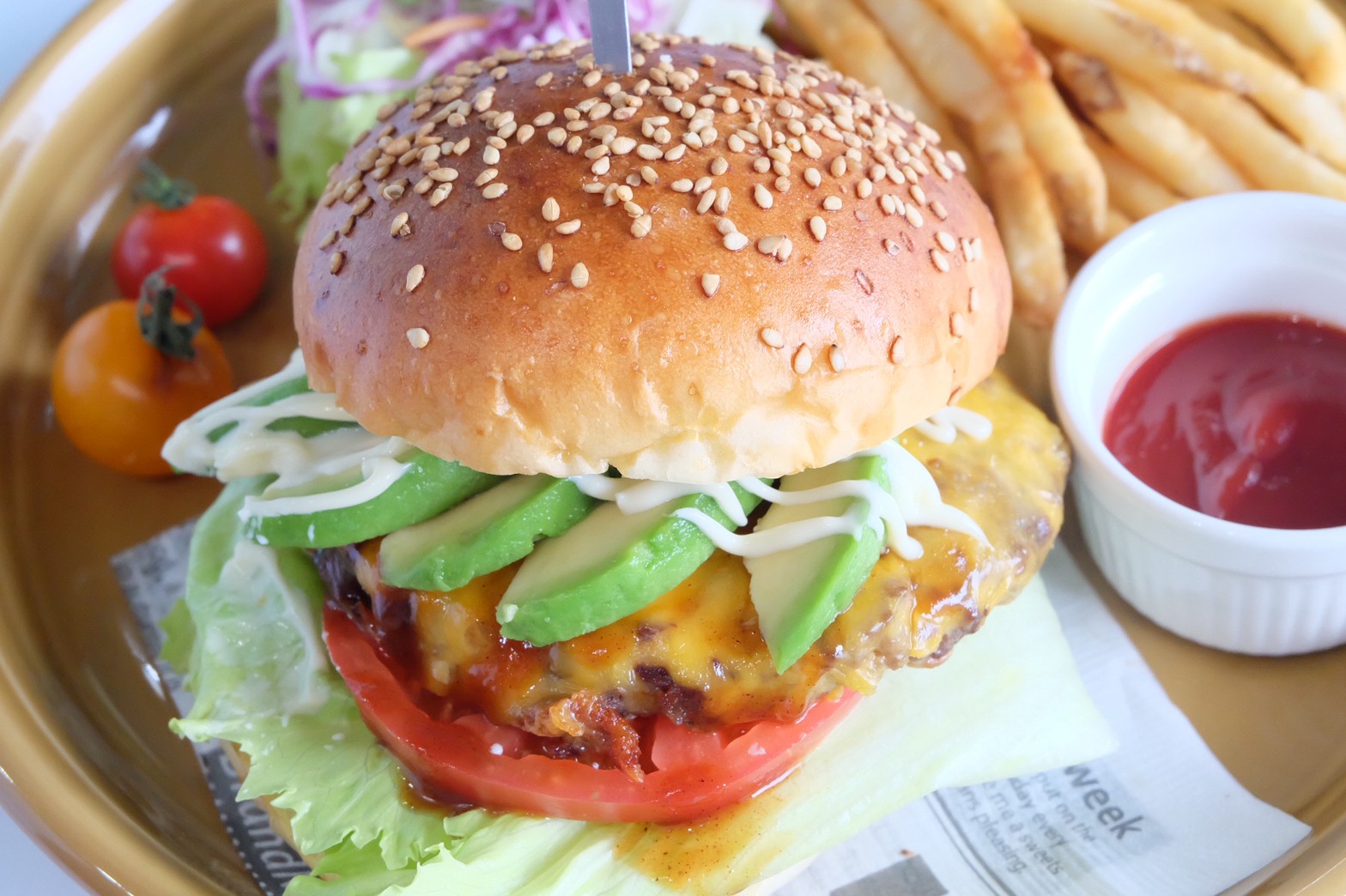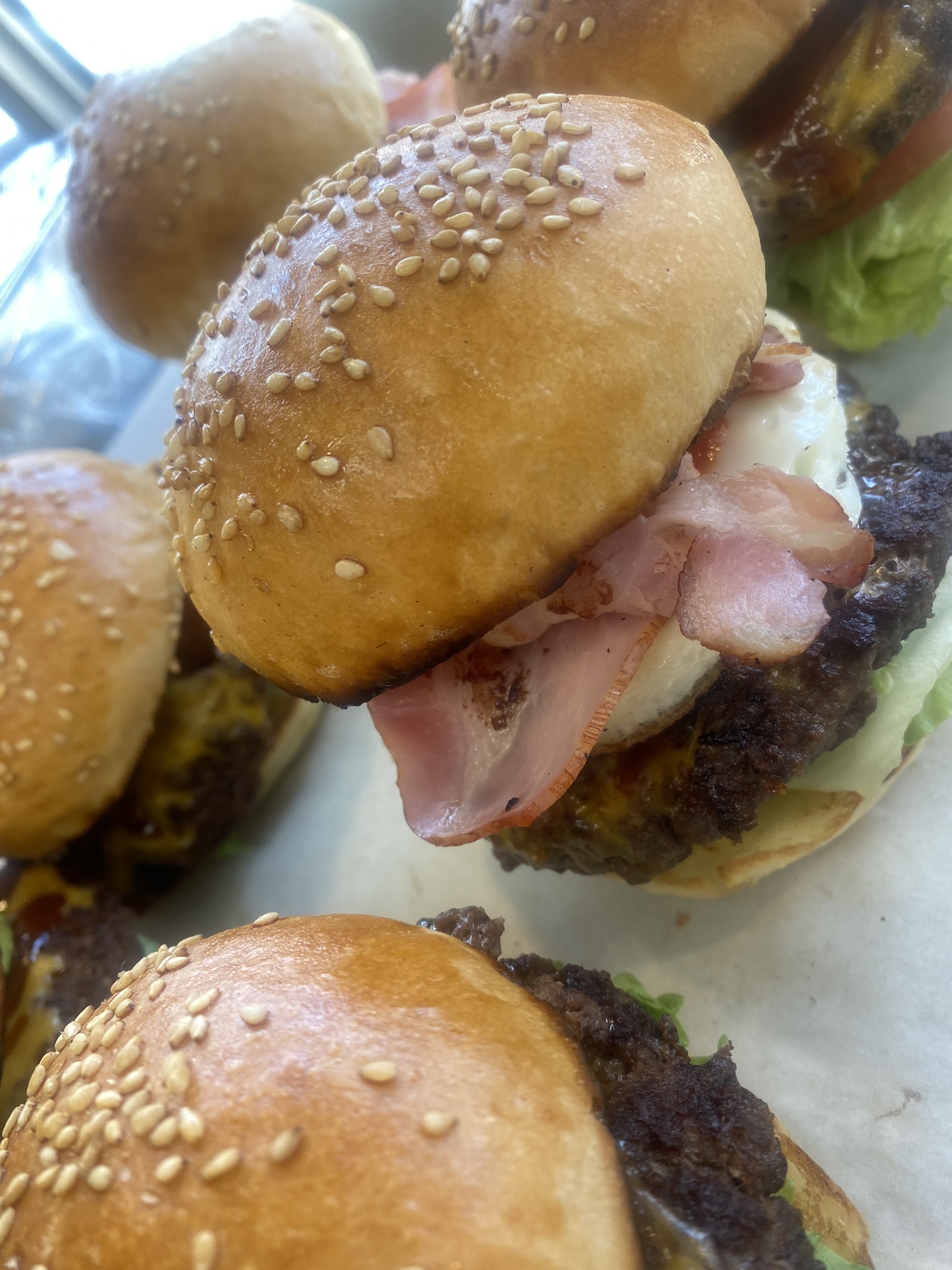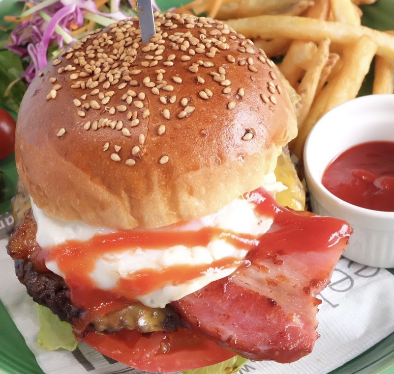 ビーフ100%のジューシーな自家製パテで作ってます!