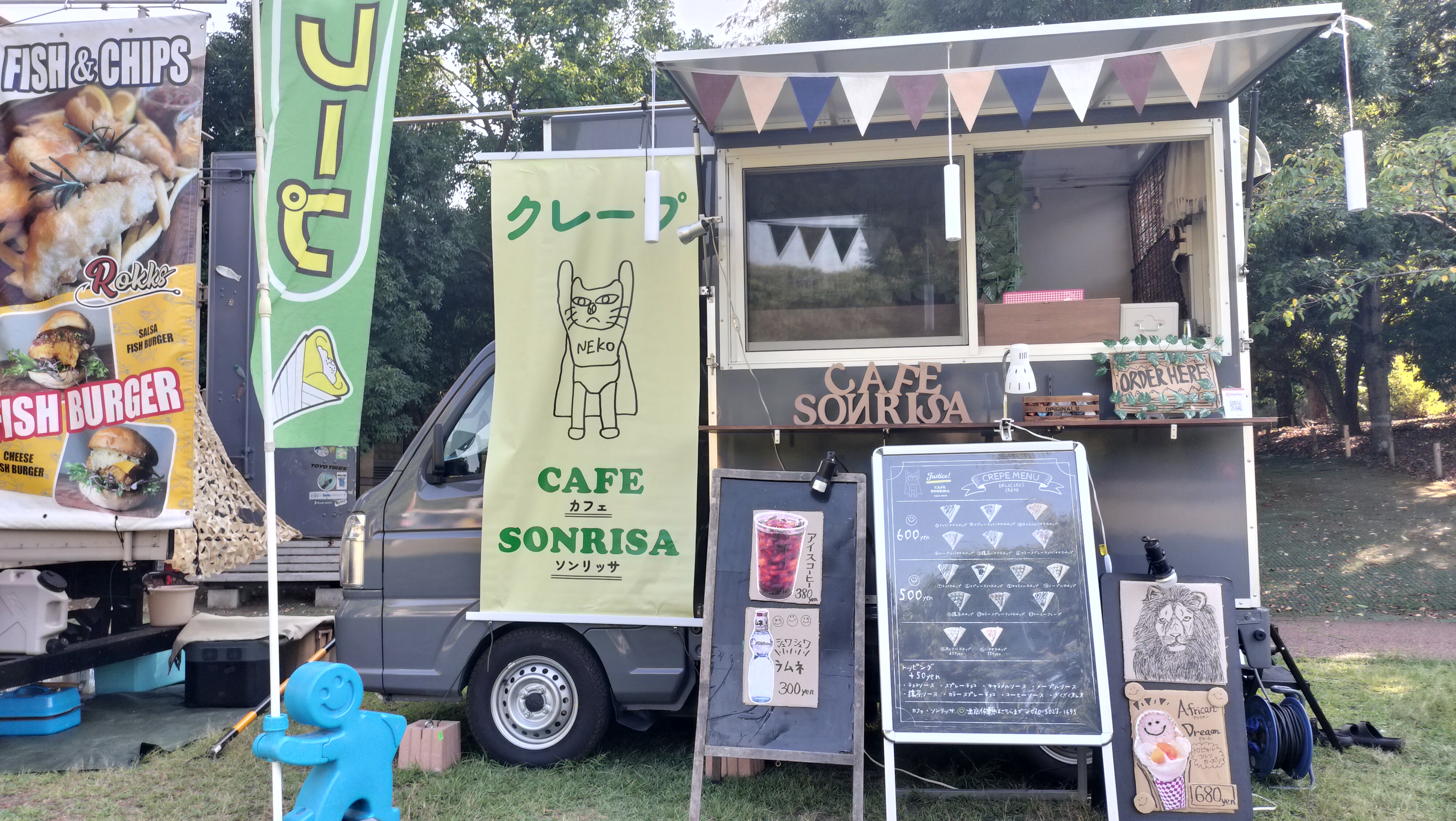 カフェ・ソンリッサは可愛いらしくコンパクトなキッチンカーで、地域のお祭り、スポーツイベント等様々なシーンに対応しております。クレープは定番のチョコバナナクレープから季節限定のフルーツメニューなど各種取り揃え、店名の由来である「微笑み」(スペイン)を皆様にお届けします。