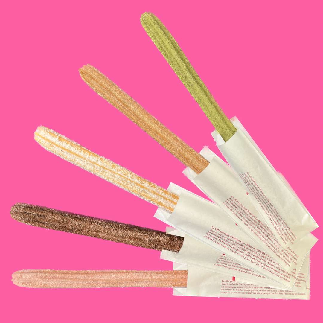 ワンハンドで食べられる人気スイーツのチュロス。お好みのフレーバーをお選びいただけます。 揚げたてサクサク食感を楽しんでください。