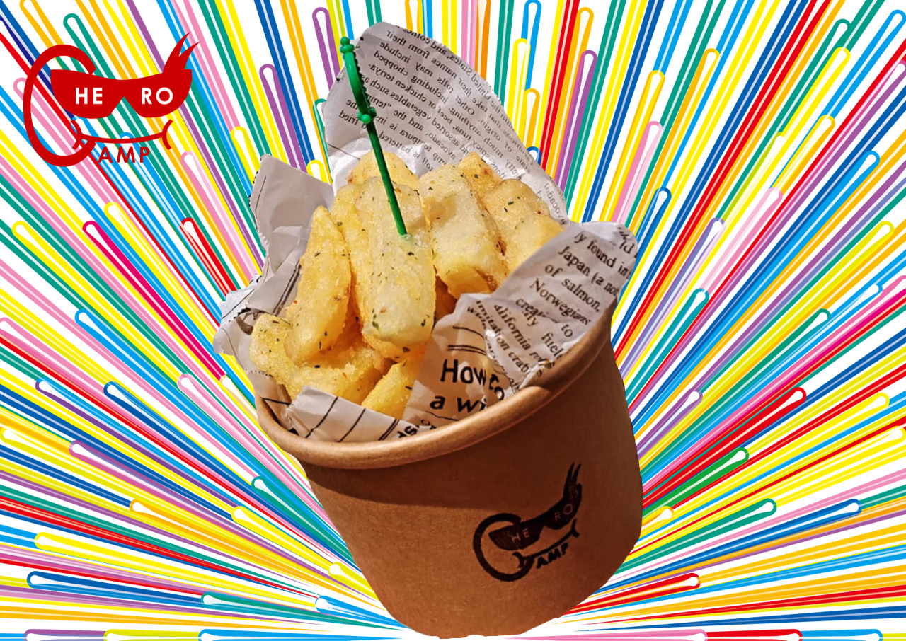 CAMPHEROのフライドポテトは、「マジで美味い本気のHEROフライドポテト」として、生のジャガイモから仕込み、完成まで手間をかけて揚げております。