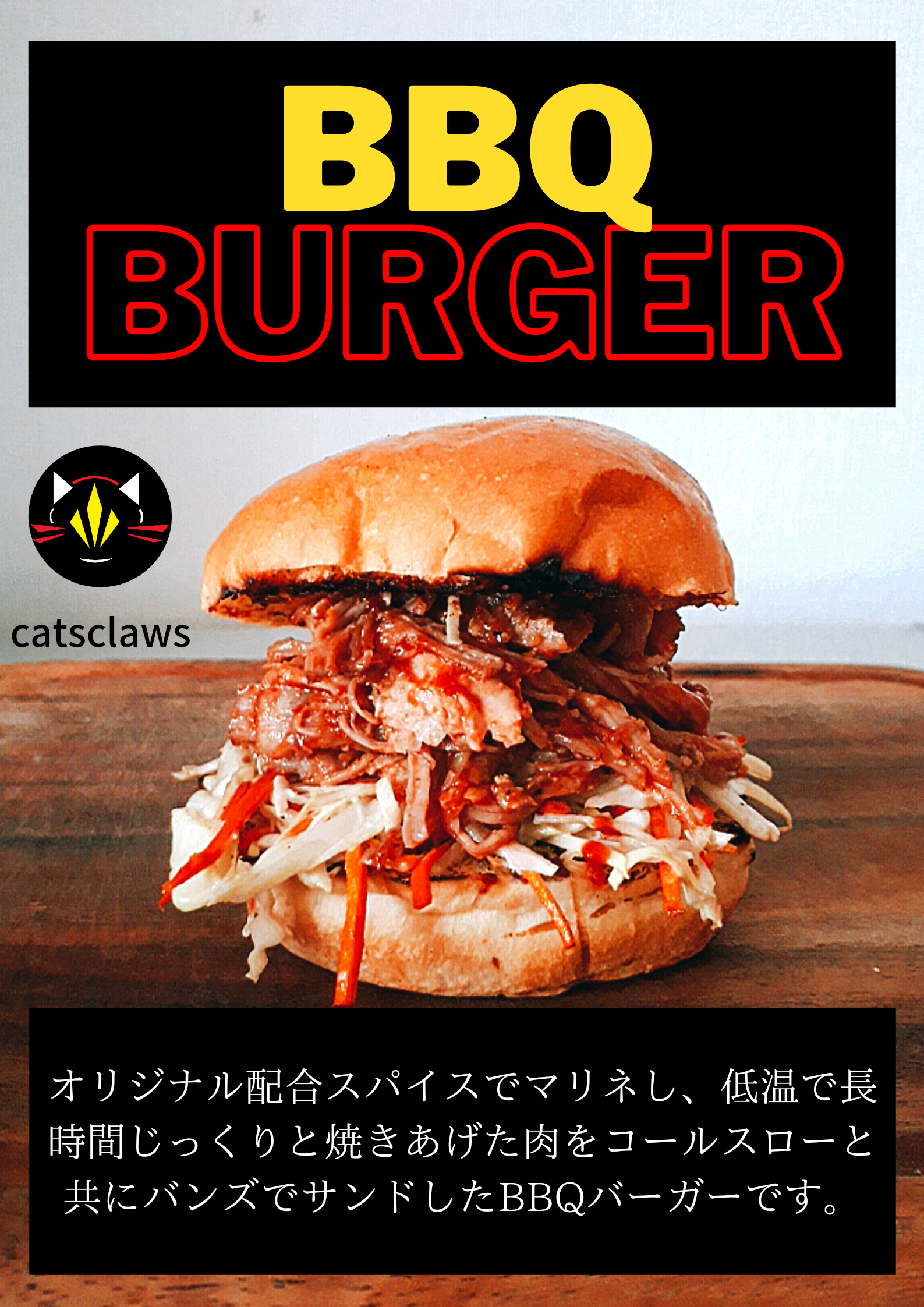 BBQ調理したお肉を焼き上げたバンズでサンドし、オリジナルバーベキューソースをかけてハンバーガーで提供します