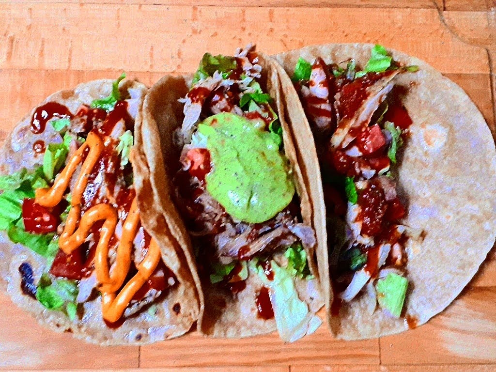 オリジナル配合スパイスを使用しBBQ調理したお肉をメインにタコスに仕上げてます。