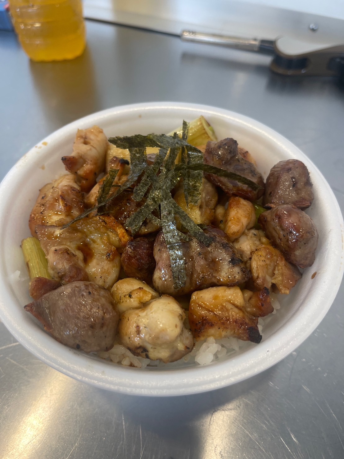 焼き鳥、唐揚げ、ヤンニョムチキン、手羽中唐揚げ、フライドポテト、ソフトドリンク、アルコール