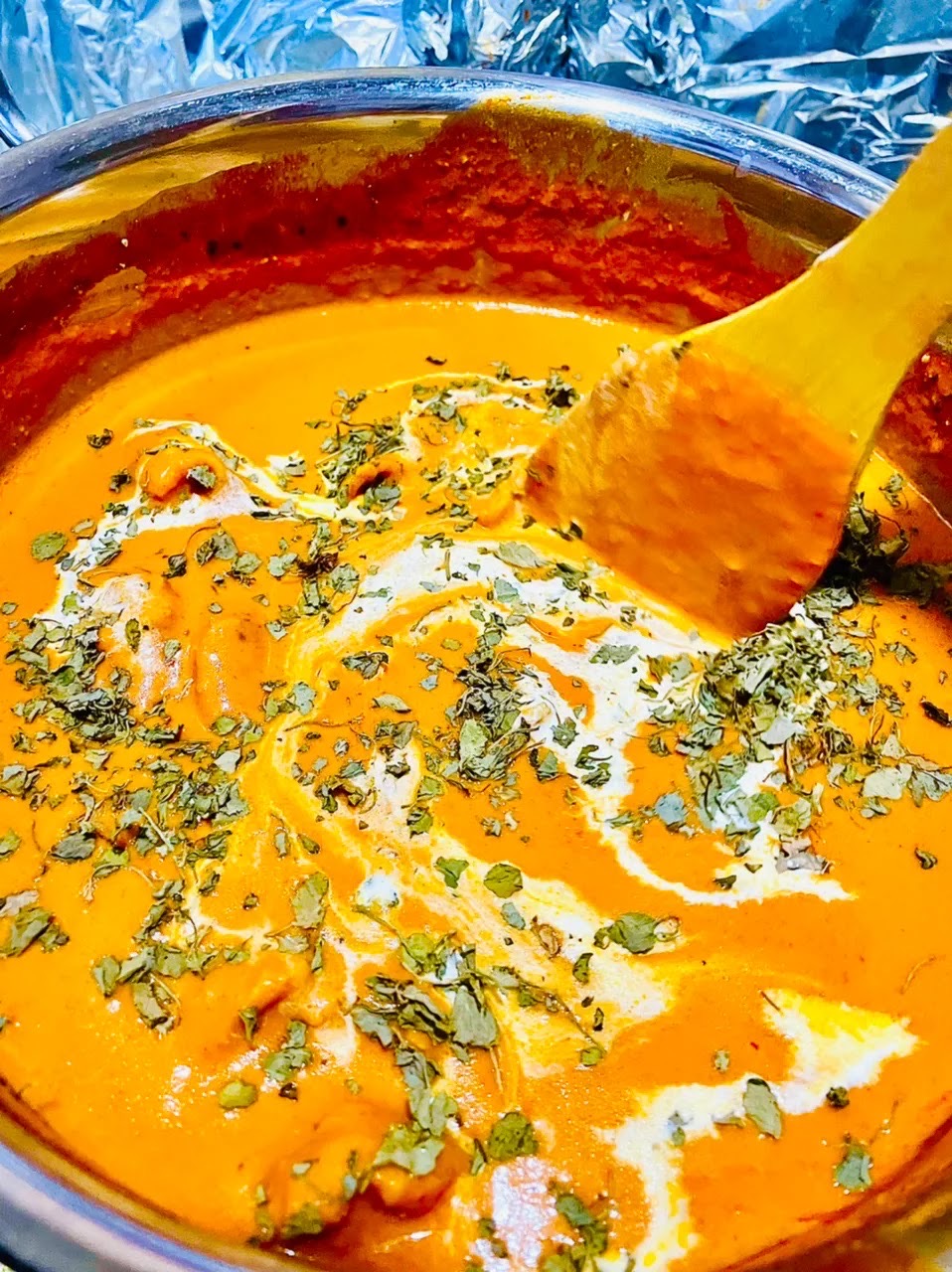 グラスフェッドバター使用バターチキンカレー。鳥皮を取り除きカロリーを抑え、さらに生姜をたっぷりと使用した体に活力を与えるカレーです。