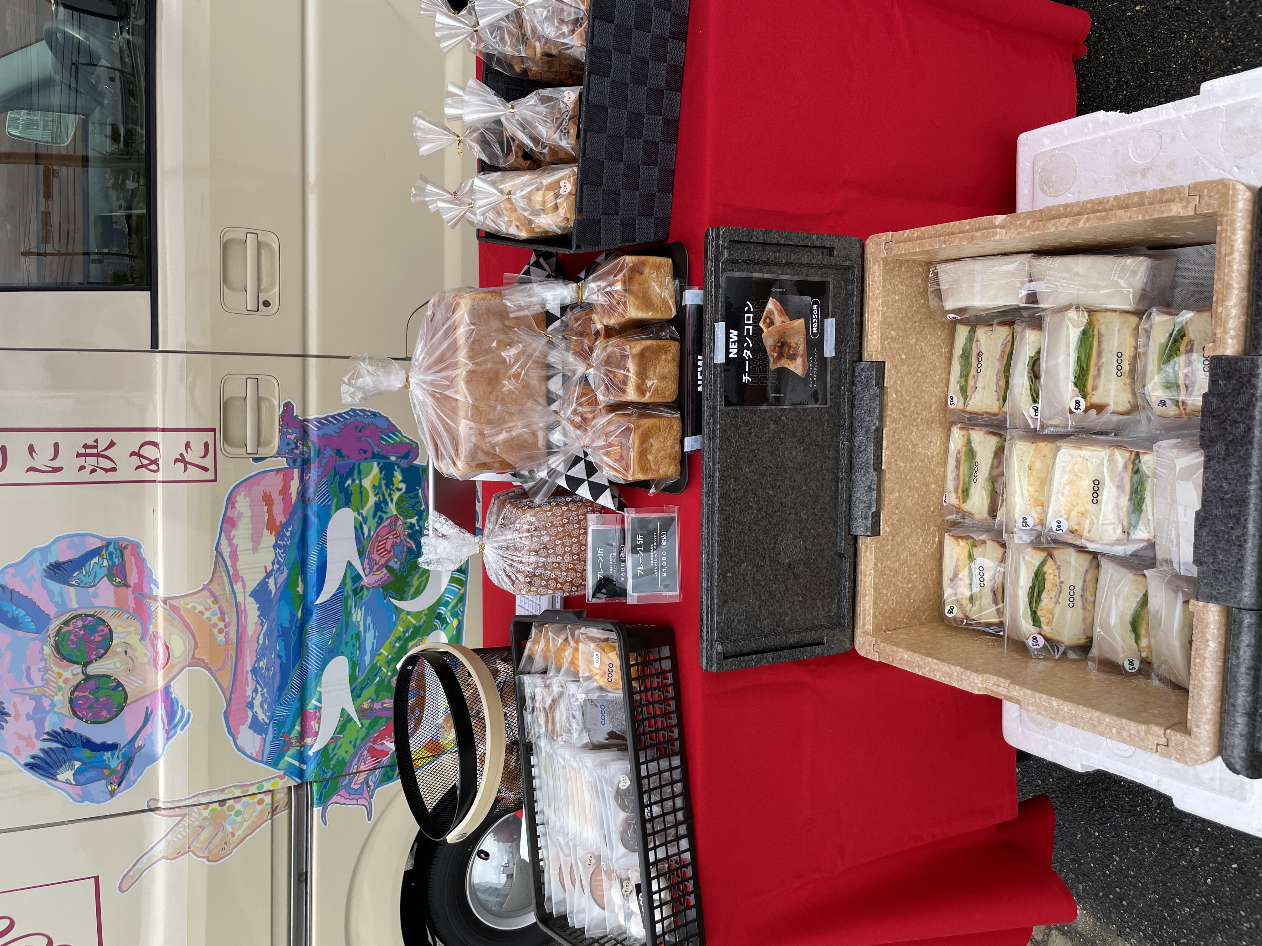 【高級食パンここに決めた】のキッチンカー『ここちゃん号』は、その可愛い見た目からどこにいっても大人気。