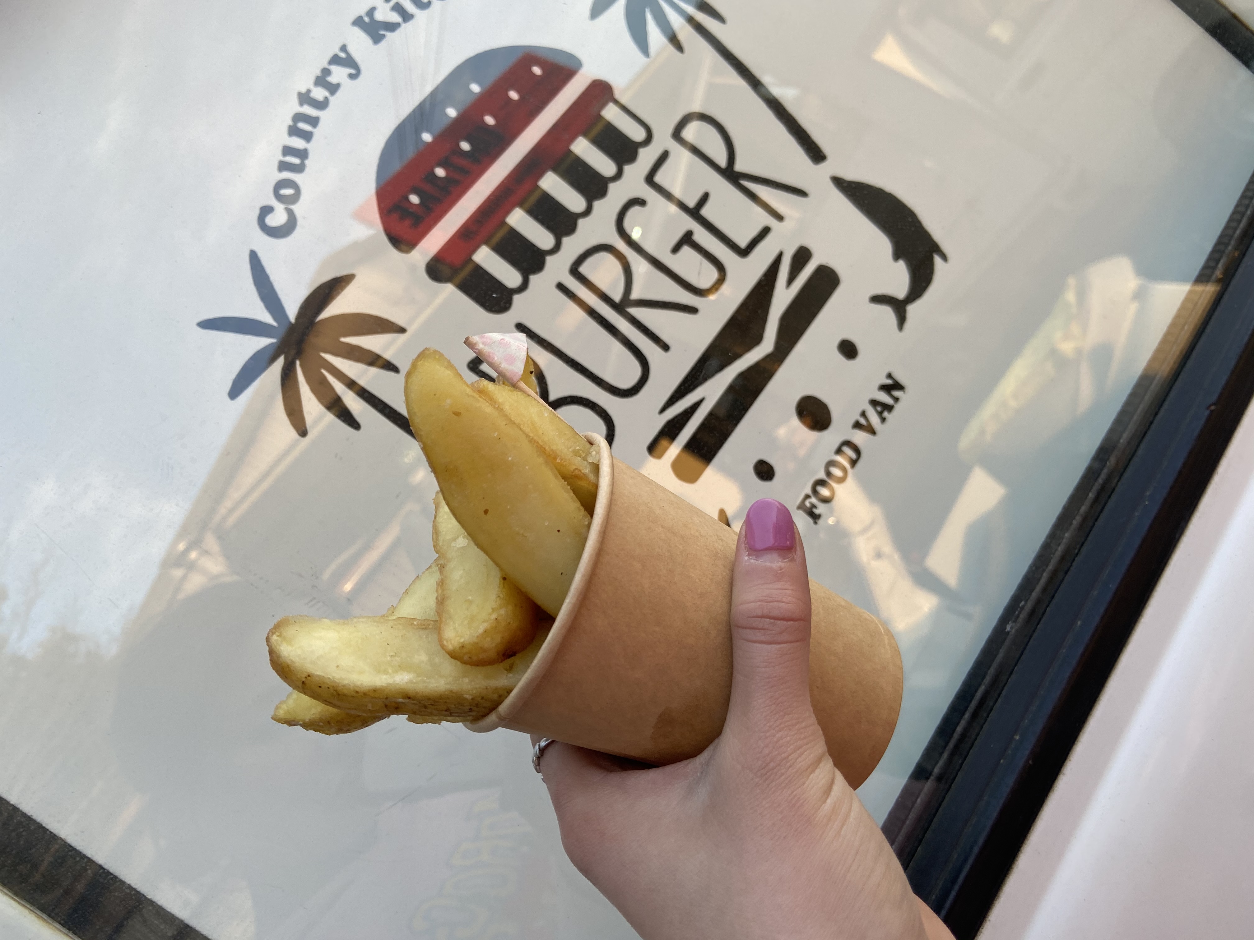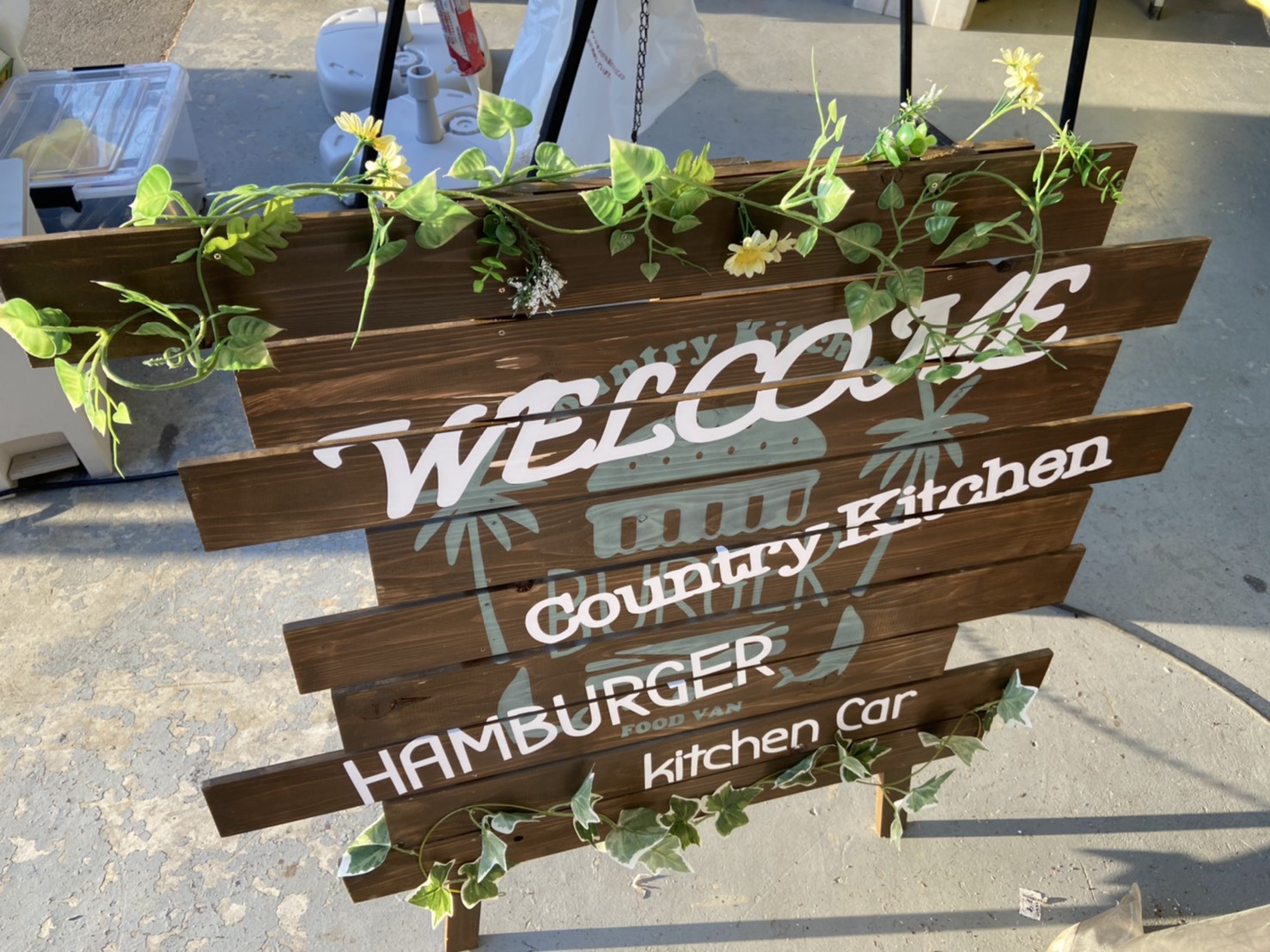 キッチンカーの見た目は小さいけれど、絶対に振り向いてもらえるようかわいく、おしゃれな外見。popや、ウェルカムボードキッチンカー似合うようスタッフが手作りしています。