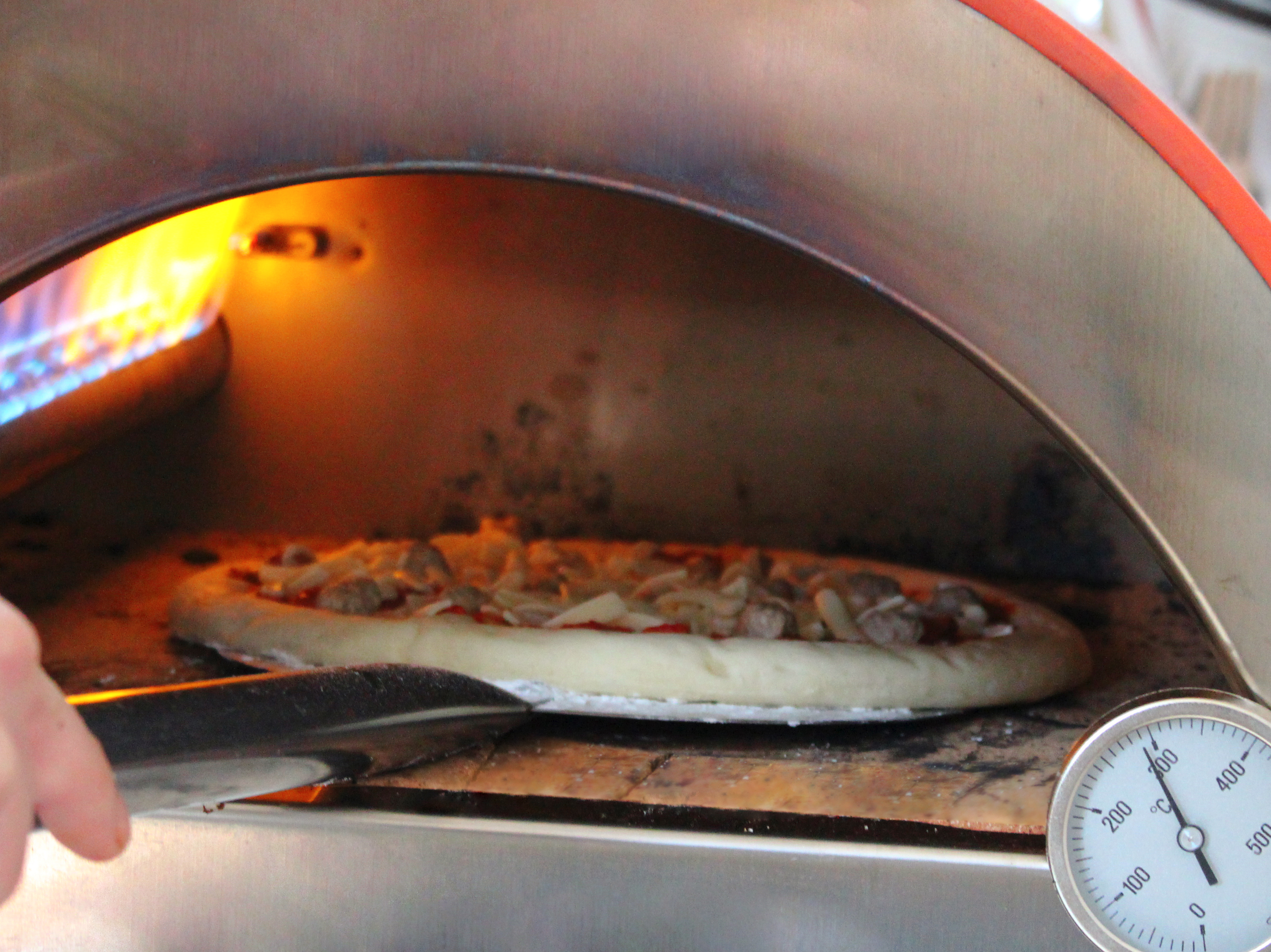 最速焼き時間2分!! 移動式「石窯」を使用し300度の高温で一気に焼き上げるため、表面はサックサク中はふっくらもっちり食感のピザを提供いたします。その場であっつあつの焼きたてをサーブ。