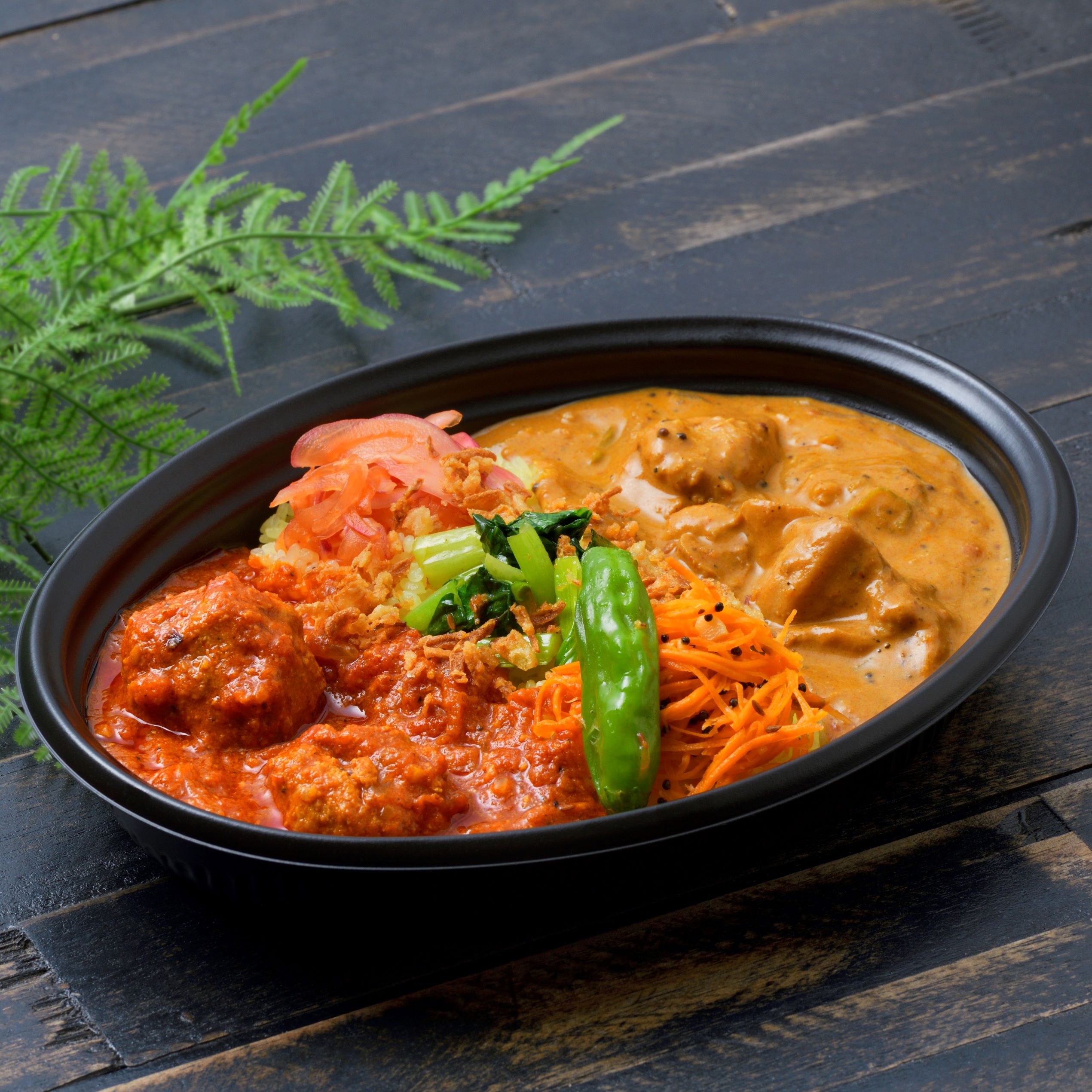 それぞれのカレーを味わったあとに、2種類を混ぜて食べても美味しいです!
