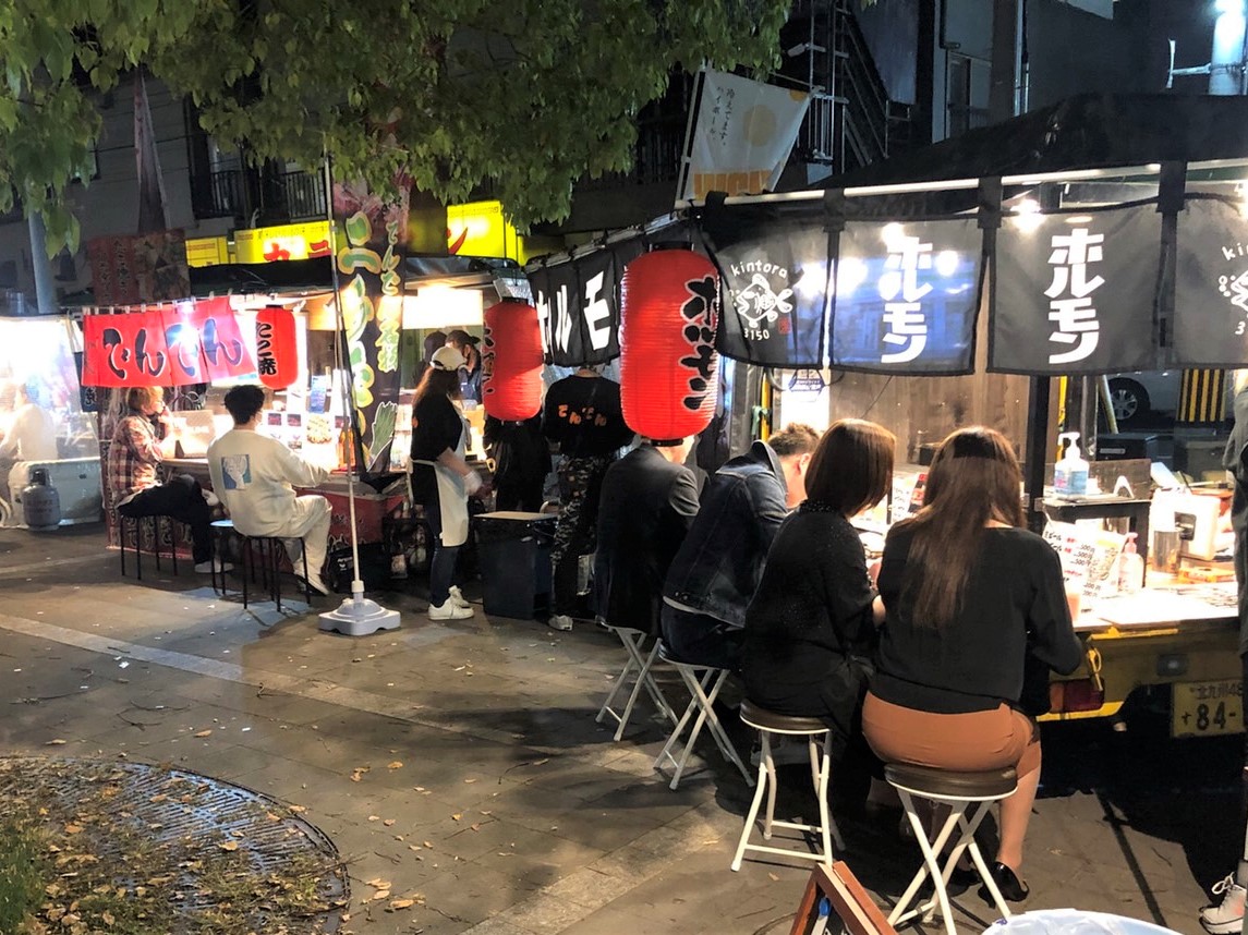 小倉北区堺町公園の屋台村にも常時出店してますので一杯飲みながらたこ焼き、からあげ、おでんなどで楽しめます。18時~24時くらいまでは営業しております!