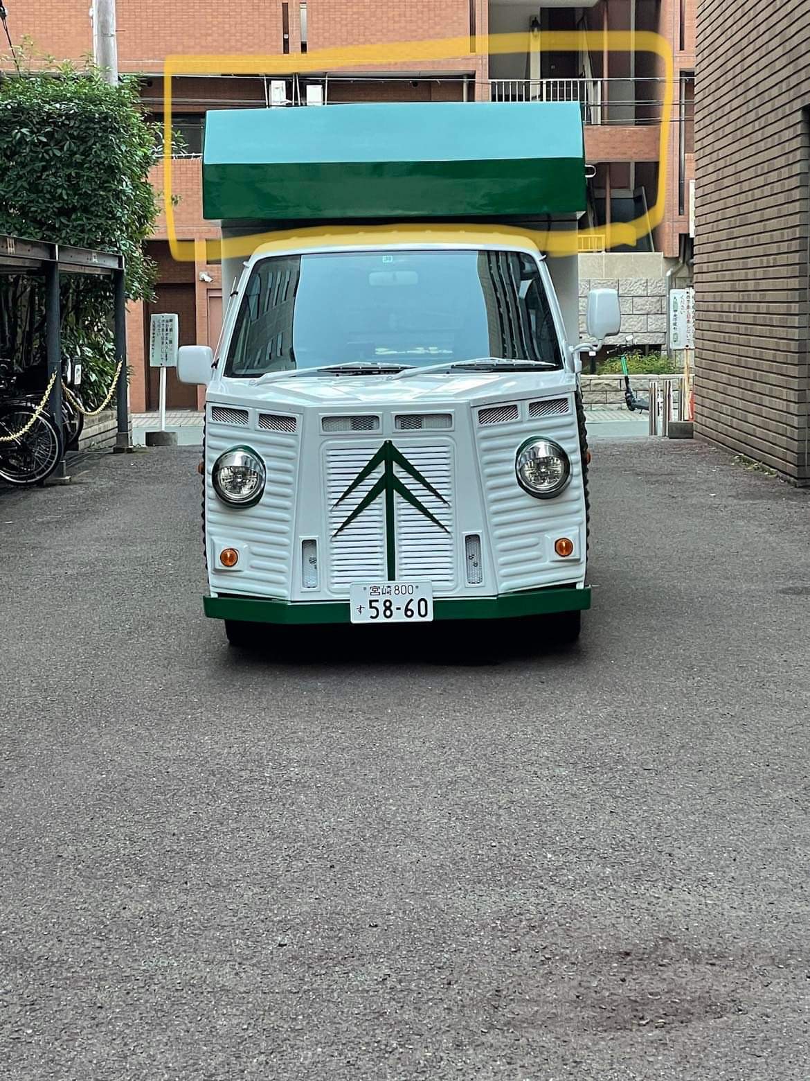 普通車でのシトロエンフェイスのキッチンカーです。大きなサイズのシトロエンフェイスは滅多にないので目立ちます。